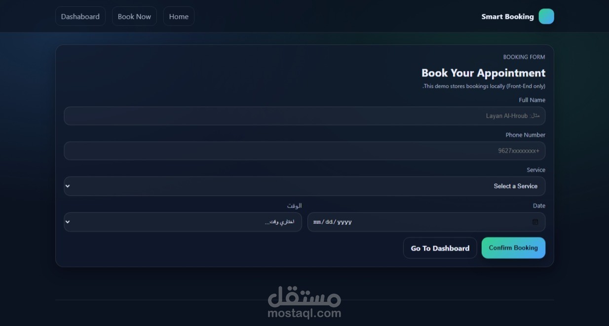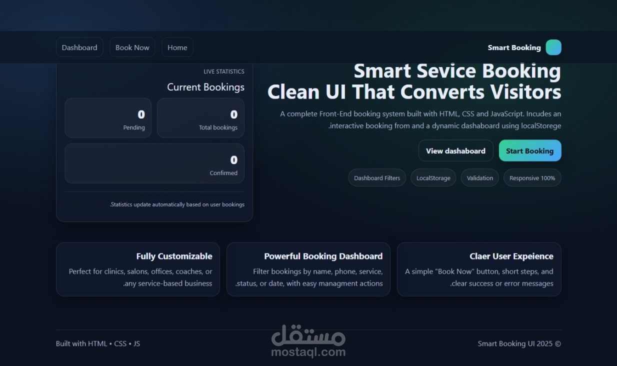 A complete Front-End service booking system built using