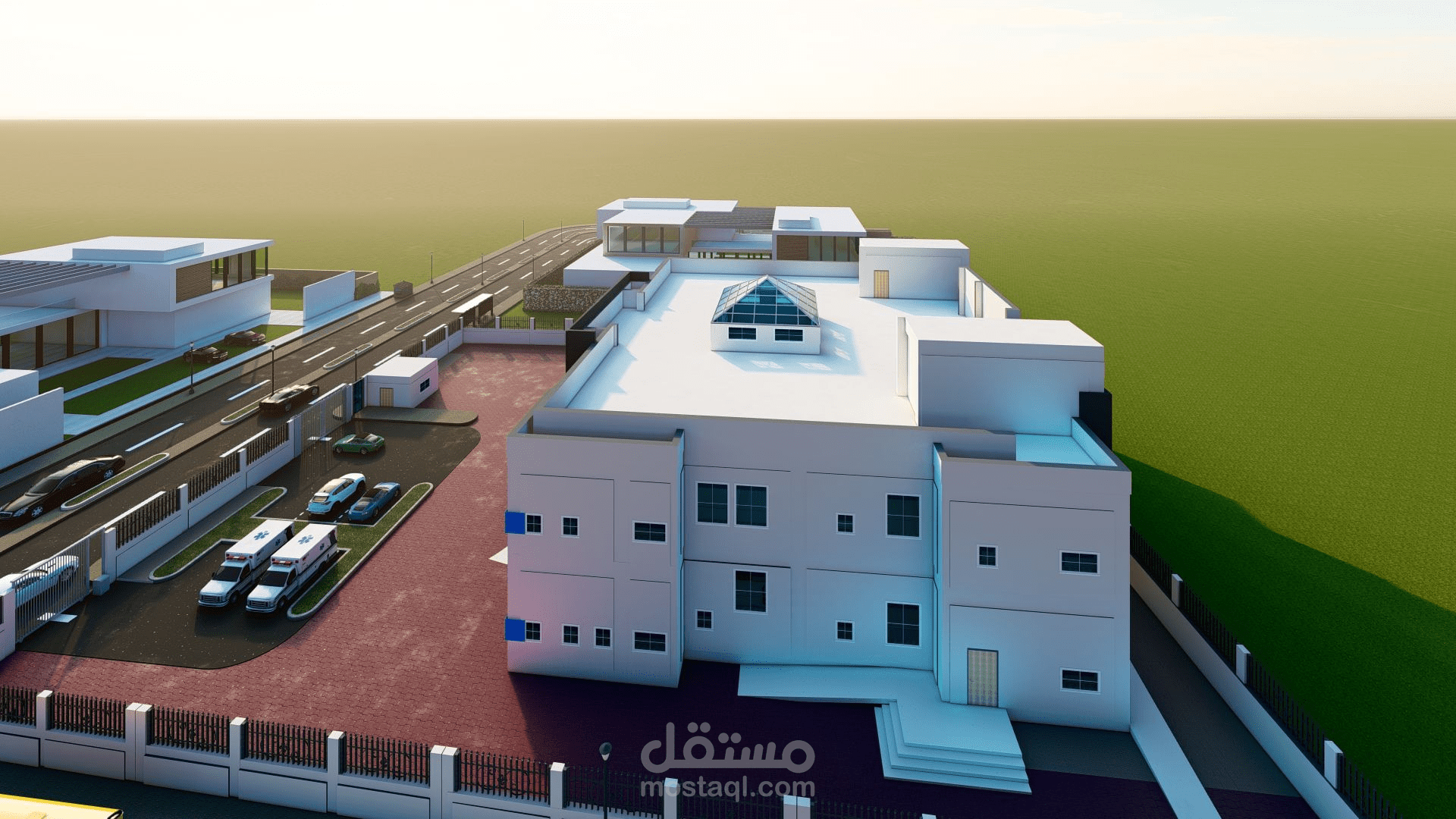 عرض تصميم خارجي للمستشفى بصريًا باستخدام Lumion.