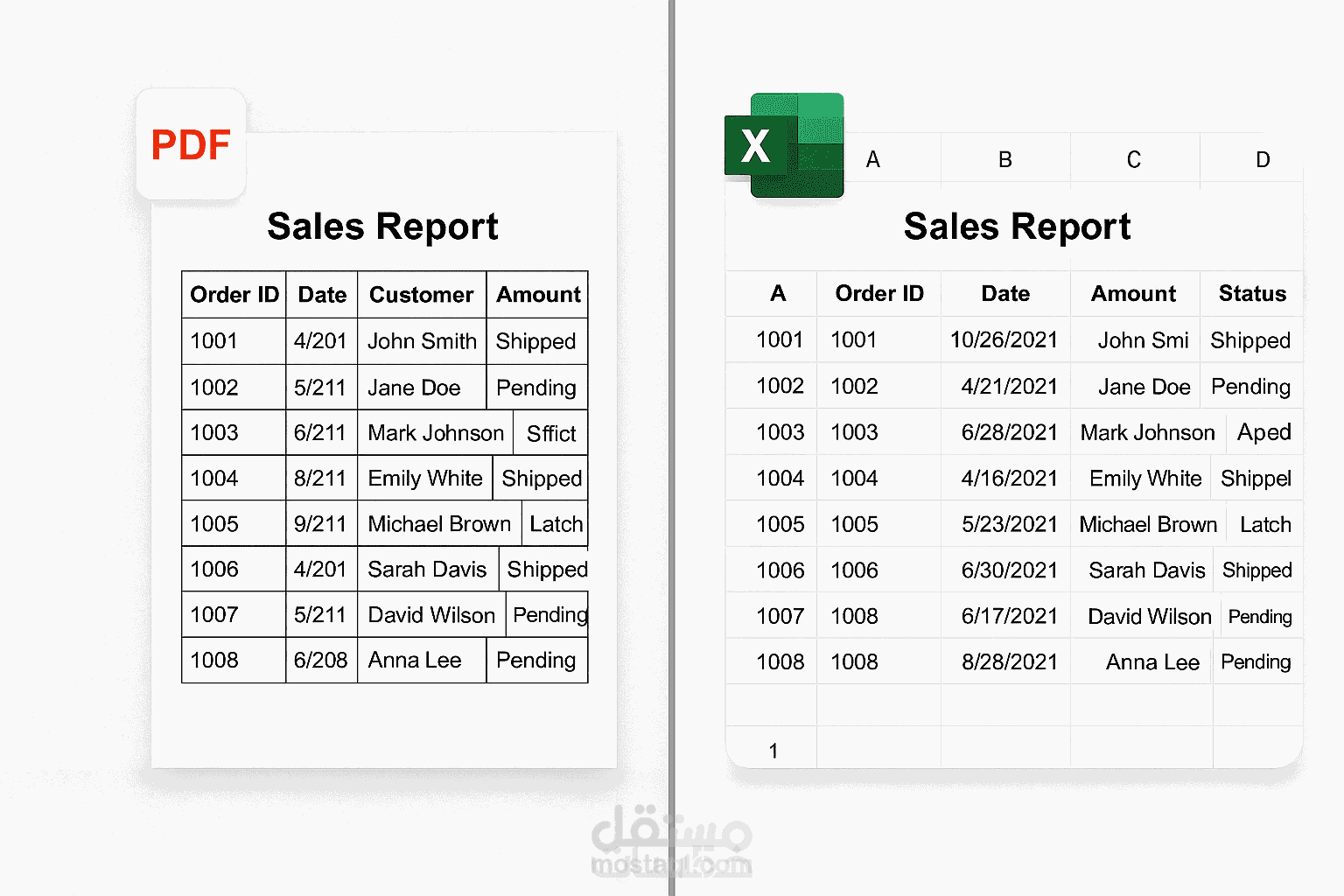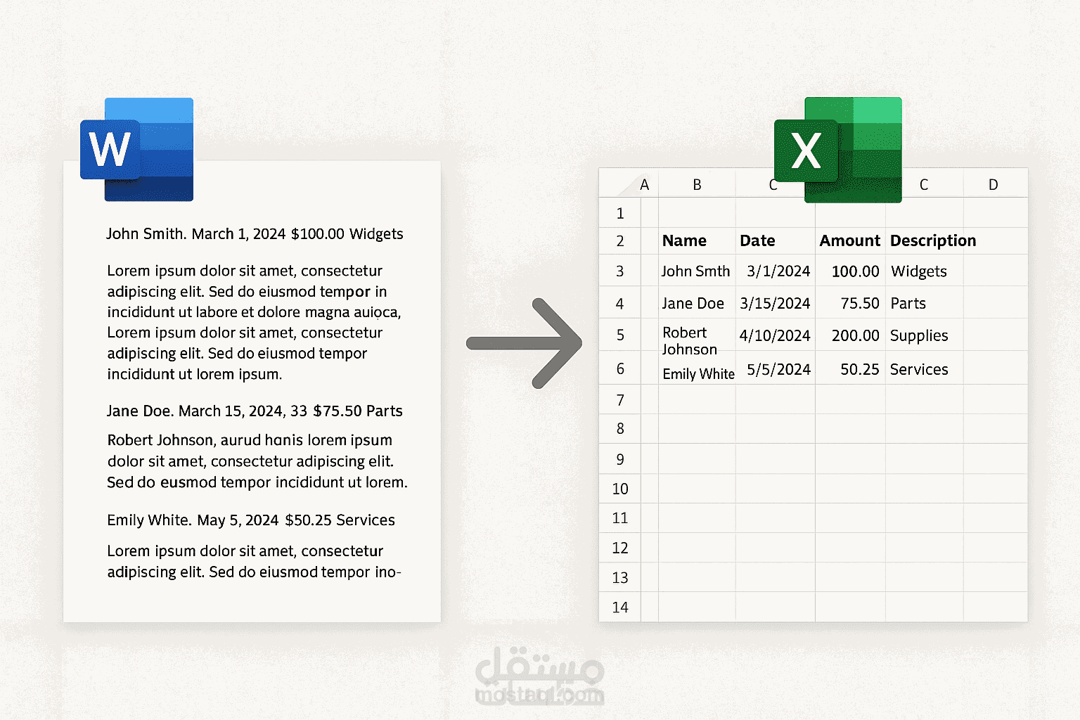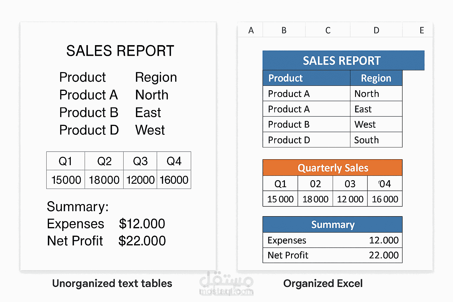 يشمل العمل ترتيب البيانات، تنسيق الجداول، وتوحيد الصيغ لضمان مظهر احترافي وتنظيم عملي.