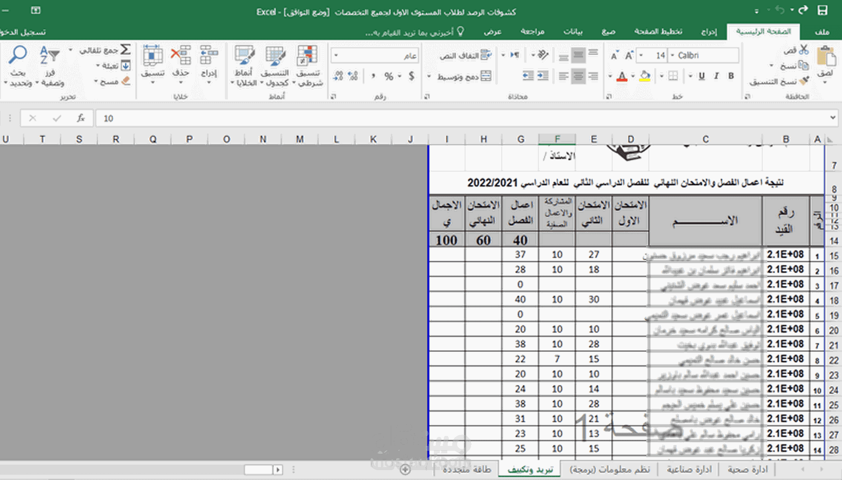 تنسيق الخلايا (العناوين، الخطوط، الألوان).