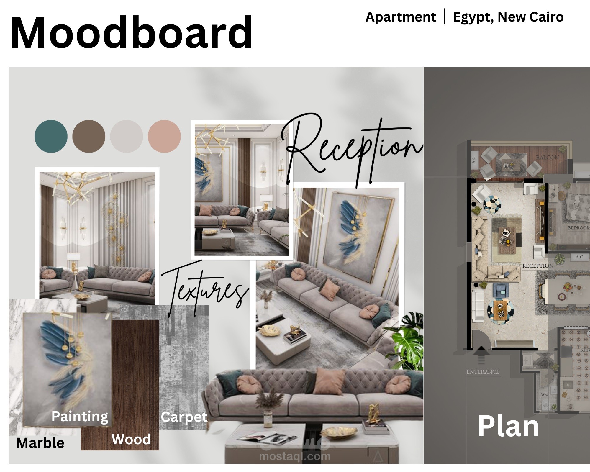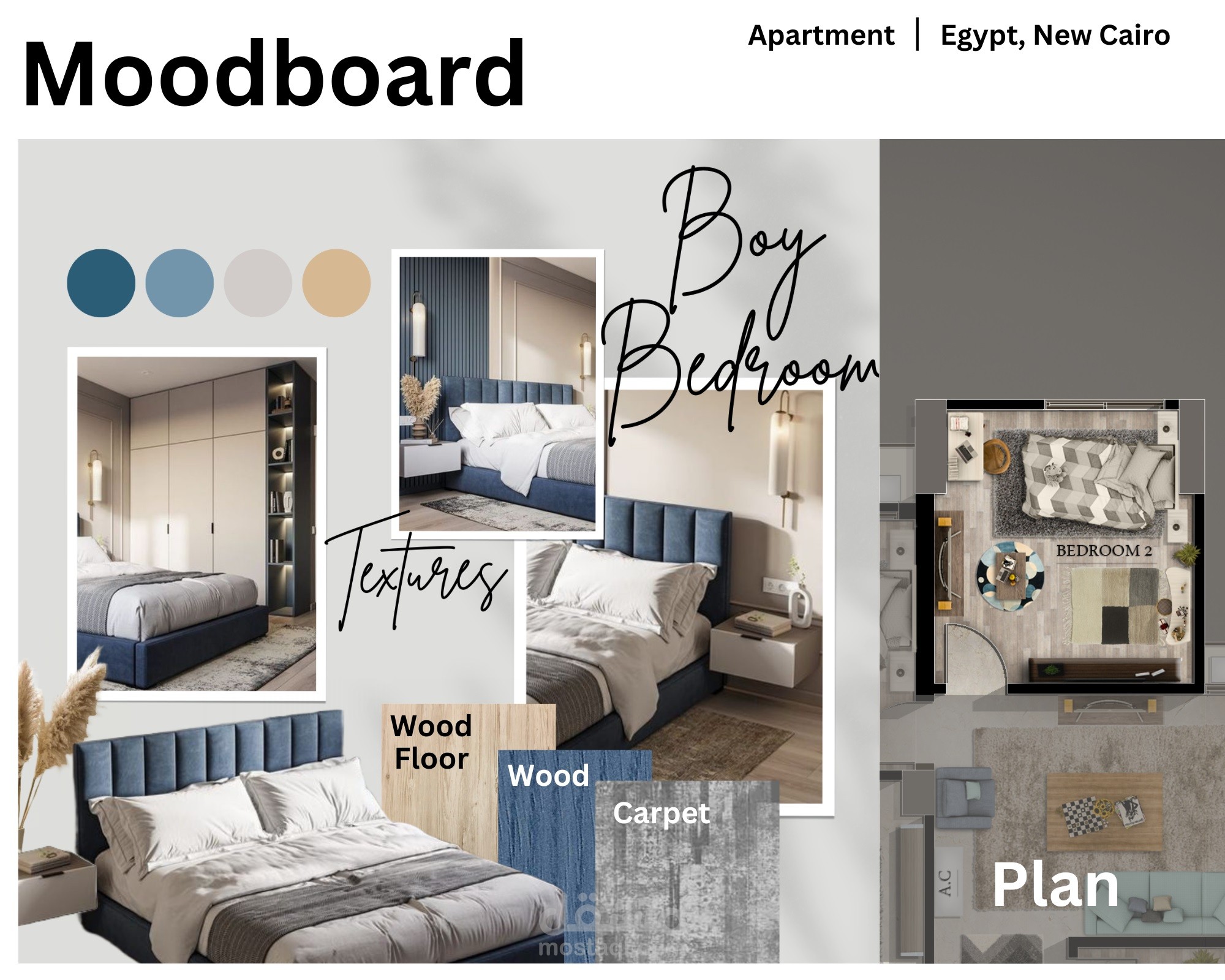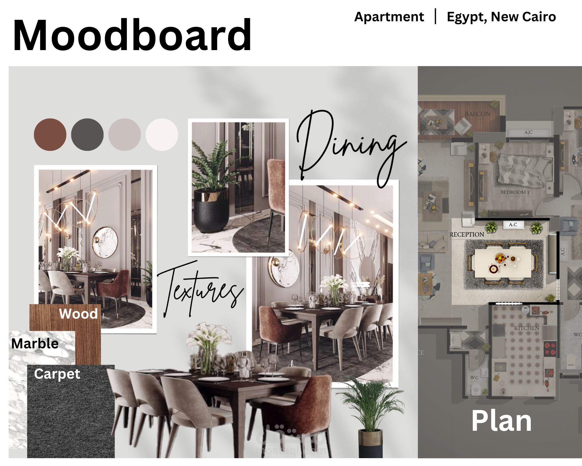 Each moodboard of every space is selected to a certain textures, color palette, Furniture, and style according to the client's preference.