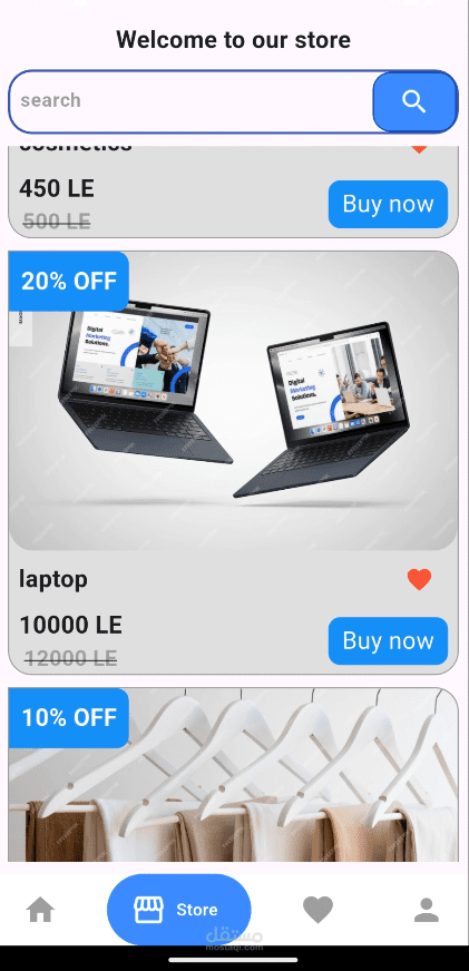 تطبيق تجارة إلكترونية تم تطويره باستخدام Flutter، يتيح للمستخدم تصفّح المنتجات، عرض تفاصيل كل منتج، وإضافة المنتجات إلى سلة المشتريات مع تجربة استخدام سهلة وسلسة.