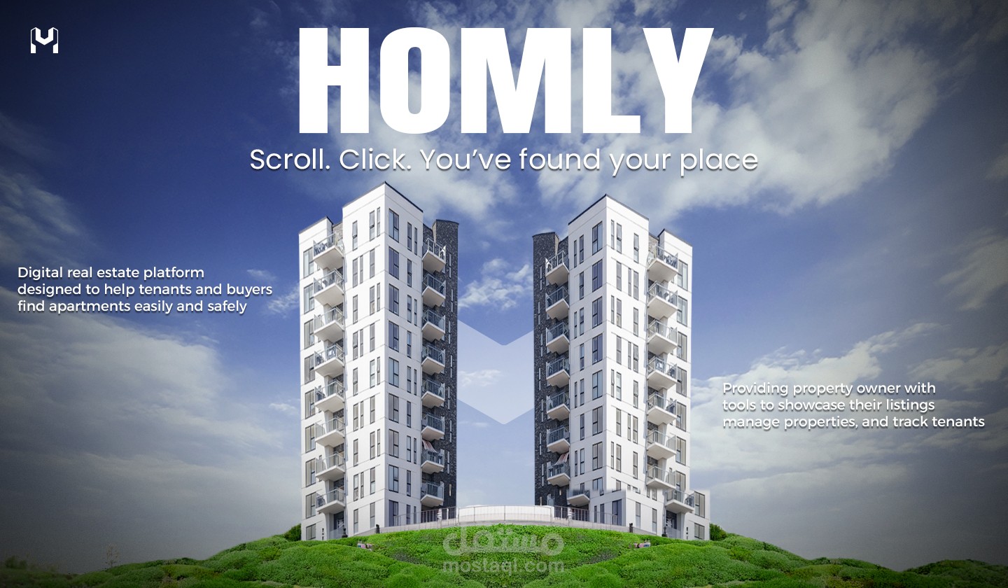 Homly هو تطبيق عقاري ذكي يهدف إلى حل مشكلات الثقة في سوق العقارات مثل الإعلانات الوهمية، الوسطاء غير الموثوقين، وتأخر المدفوعات. المنصة تربط بين المشترين، المستأجرين، والملاك عبر نظام توثيق الهوية )KYC(، الدفع المضمون )Escrow(، والذكاء الاصطناعي لمطابقة الوحدات بالمستخدمين بدقة.