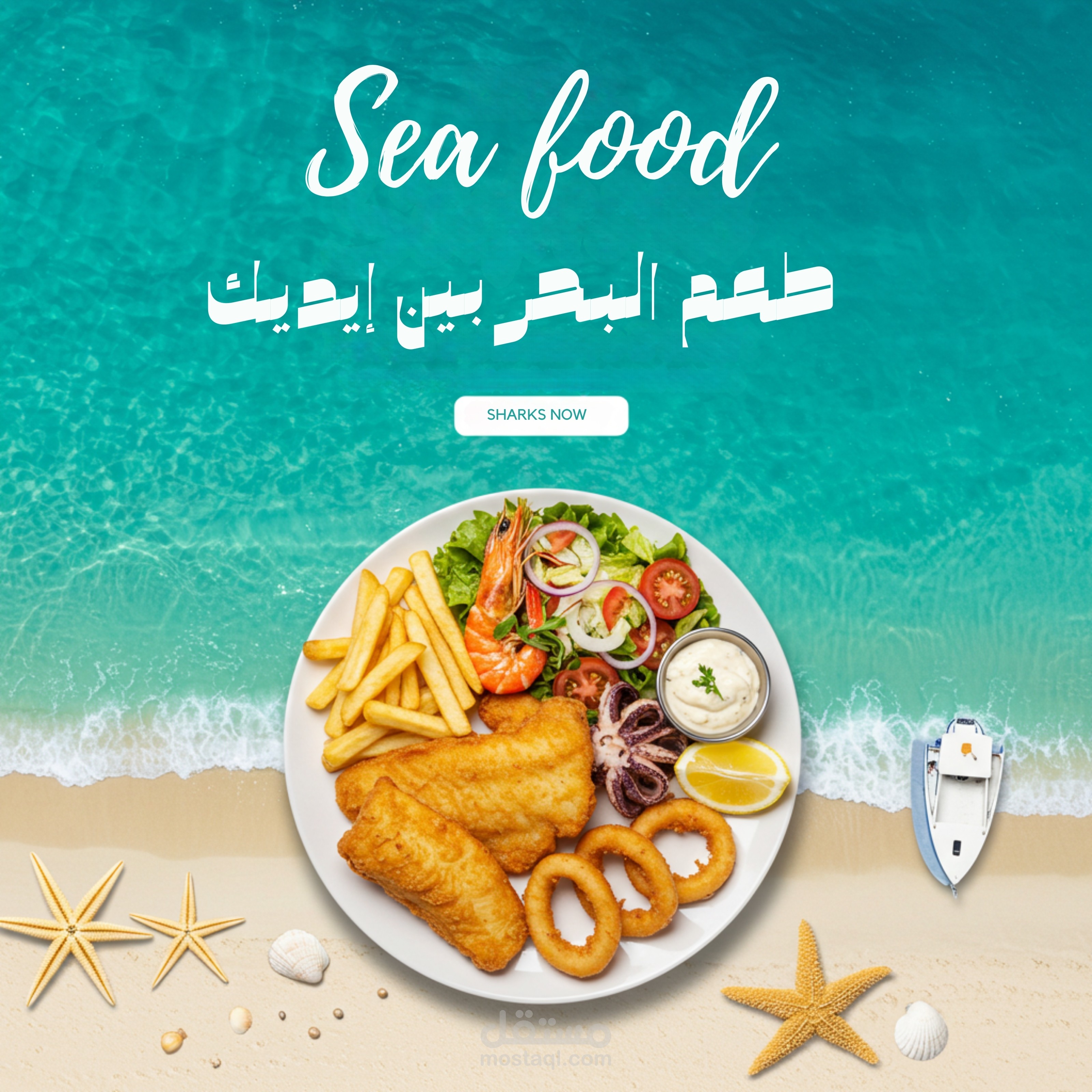 تم تصميم حملة سيفود كاملة تعتمد على ألوان البحر ودفء الغروب، مع صور واقعية للأطباق لإظهار جودة الطعام.