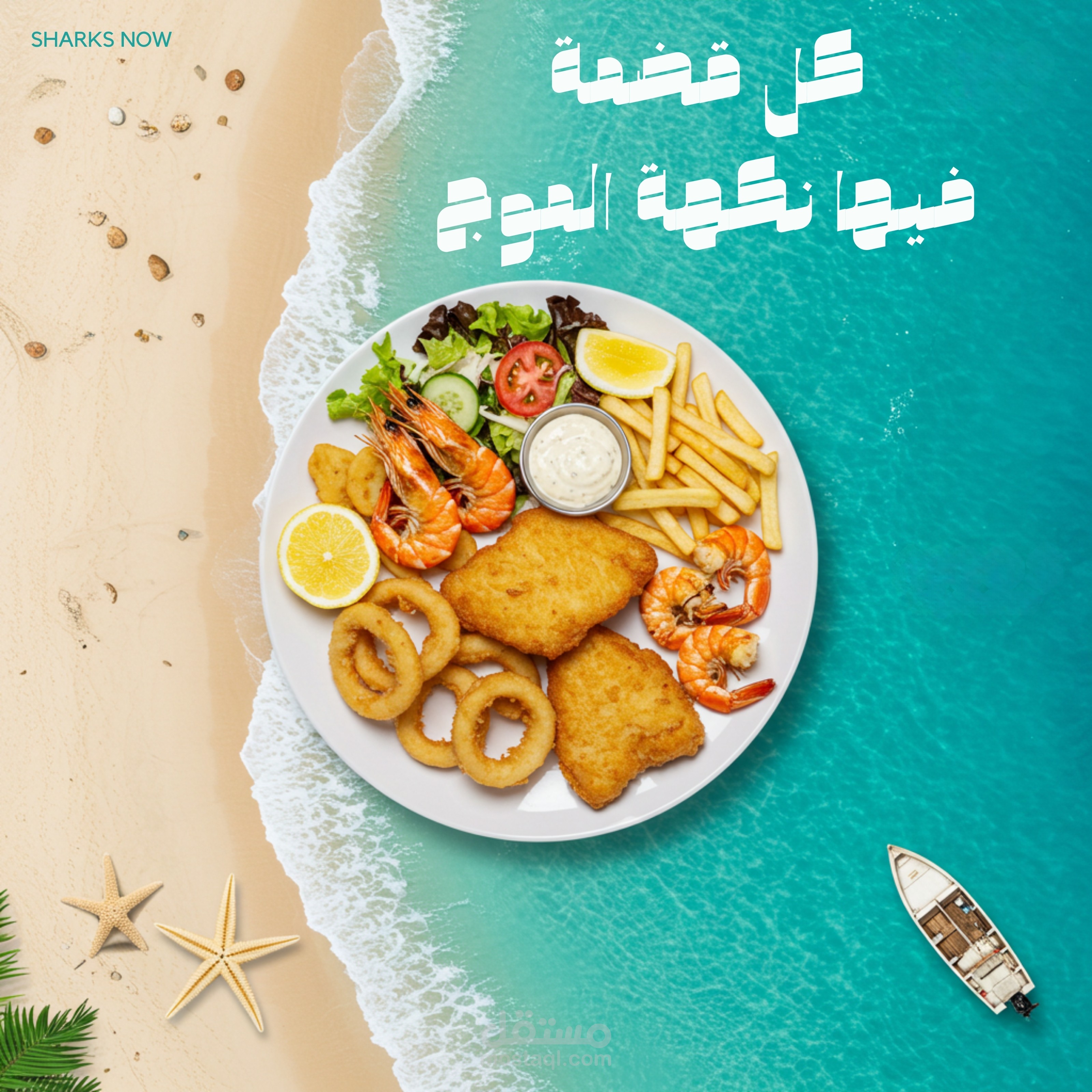الهدف هو تقديم تجربة إبداعية ترفع هوية مطعم Sharks وتعزز التفاعل مع عروض السيفود.