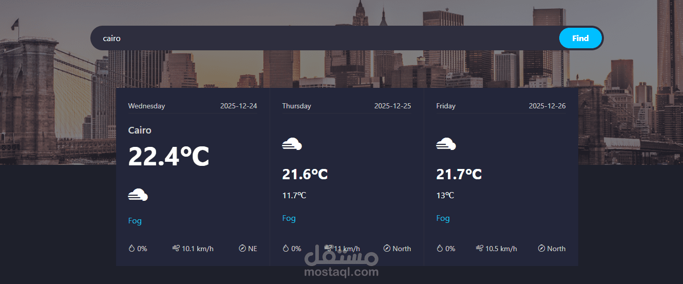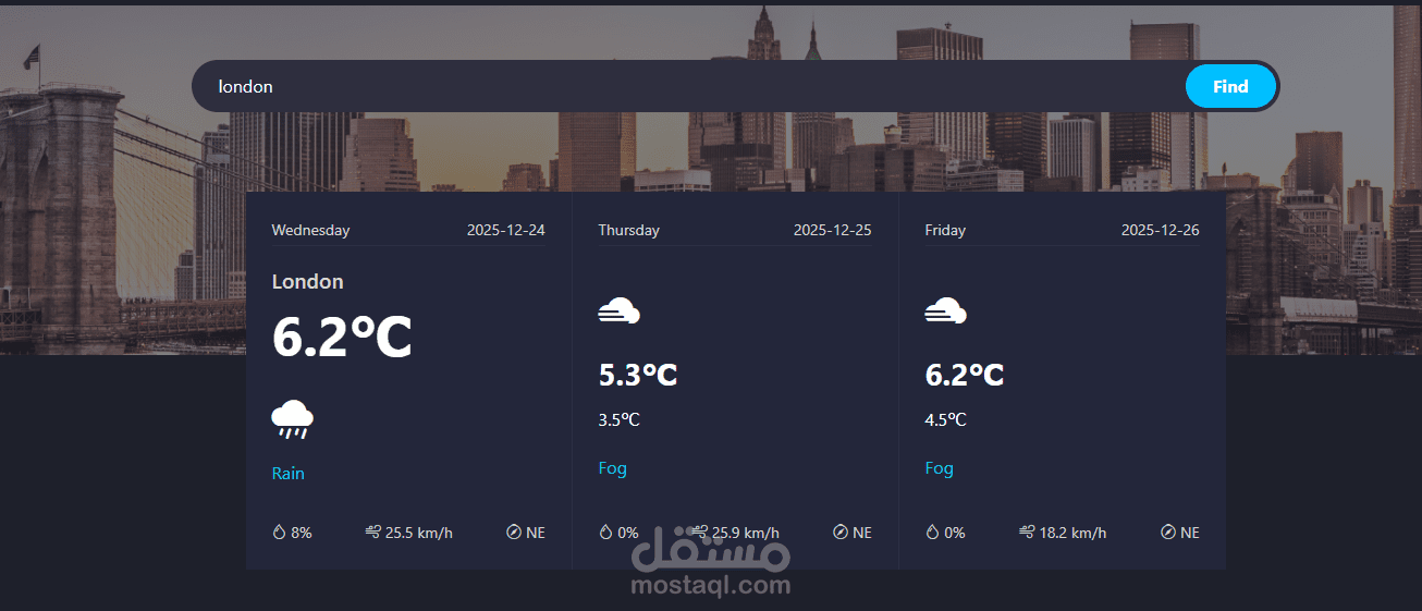 The app provides a clean and user-friendly interface where users can enter the name of a city and instantly receive updated weather details such as temperature, weather condition, humidity, and wind speed.