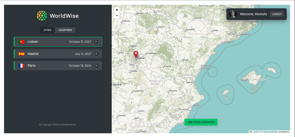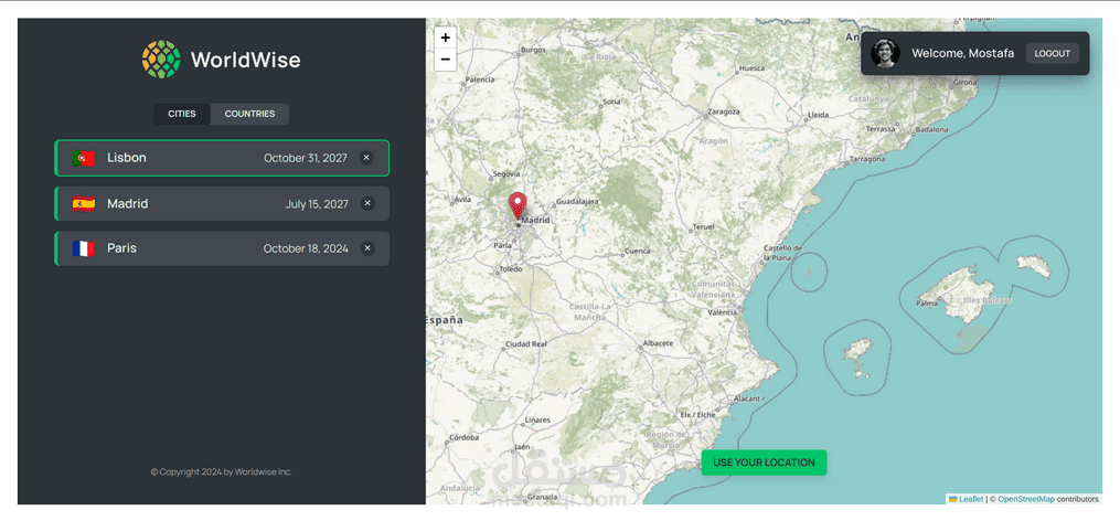 تطبيق React.js لحفظ وتتبع الأماكن التي قمت بزيارتها من خلال إضافتها مباشرةً على خريطة تفاعلية. ما عليك سوى اختيار الموقع، إضافة الملاحظات، وبناء سجلّك الشخصي لرحلاتك!