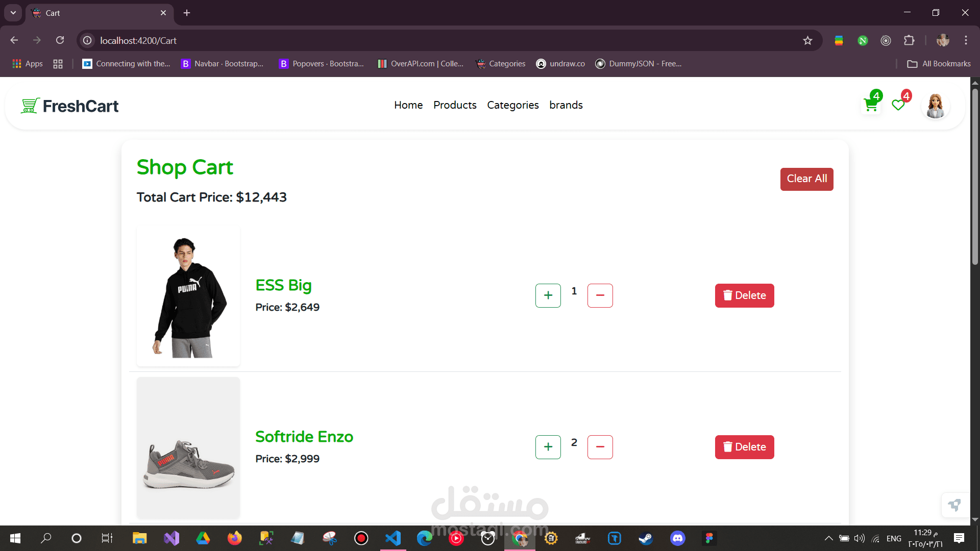 FreshCart is a modern eCommerce platform built with Angular 19, designed for seamless online shopping. It leverages Observables and Interfaces for efficient data handling and follows a responsive design to ensure a great experience on all devices.