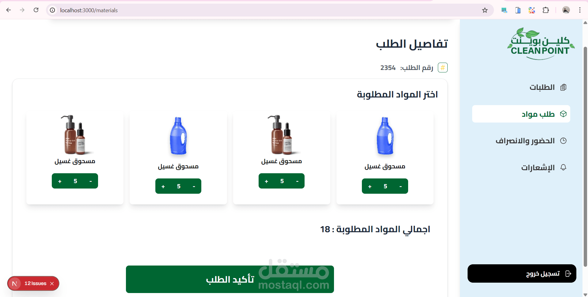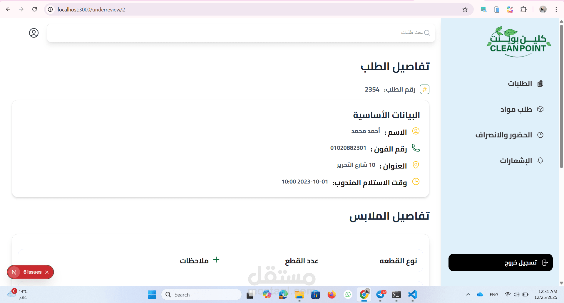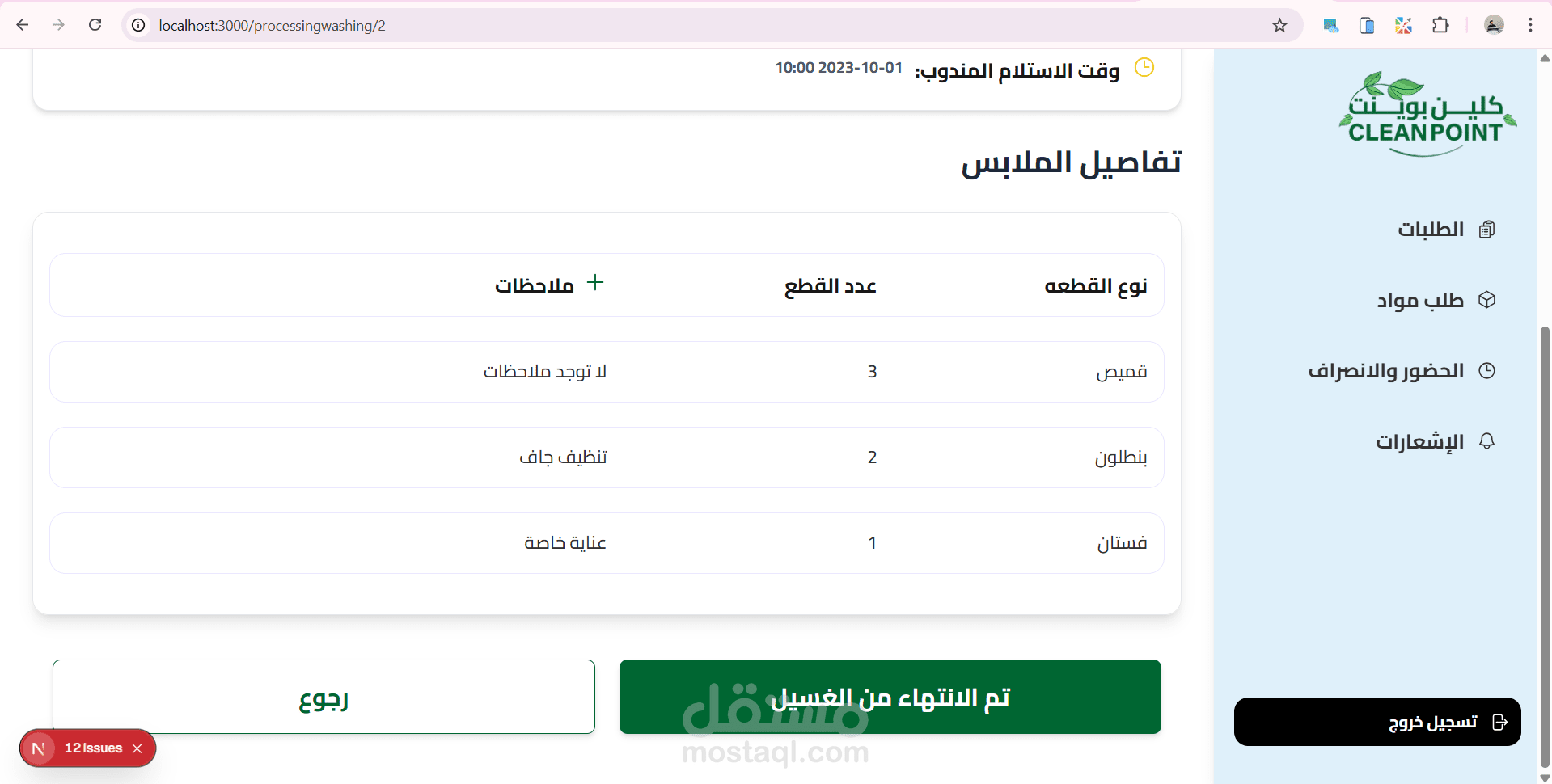 موقع داشبورد ل ادارة مغسلة من خلال متابة الطلبات الجديدة والطلبات قيد الغسيل والطلبات اللى انتهى غسيلها والطلبات الجاهزة للاستلام