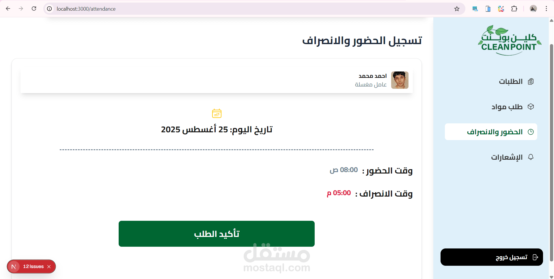 وكمان نظام حضور وانصراف للعمال