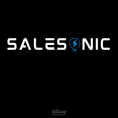 شعار SALES⚡SONIC بارز وواضح في وسط الشاشة، حيث يجمع بين كلمة SALES (المبيعات) وSONIC (السرعة والطاقة) مع رمز البرق ⚡ الذي يرمز إلى السرعة الفائقة في تحقيق النتائج والنمو المتسارع.