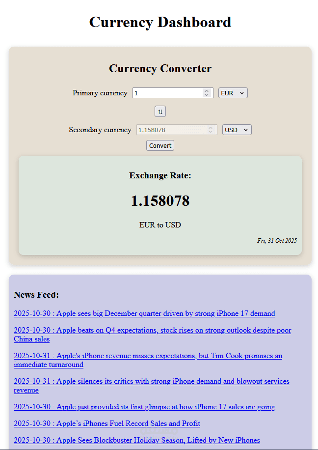 Developed a responsive currency converter using React, Express.js, and PostgreSQL. Fetches real-time exchange rates and financial news via APIs. Implemented secure JWT authentication and smooth, user-friendly interface for reliable conversions.