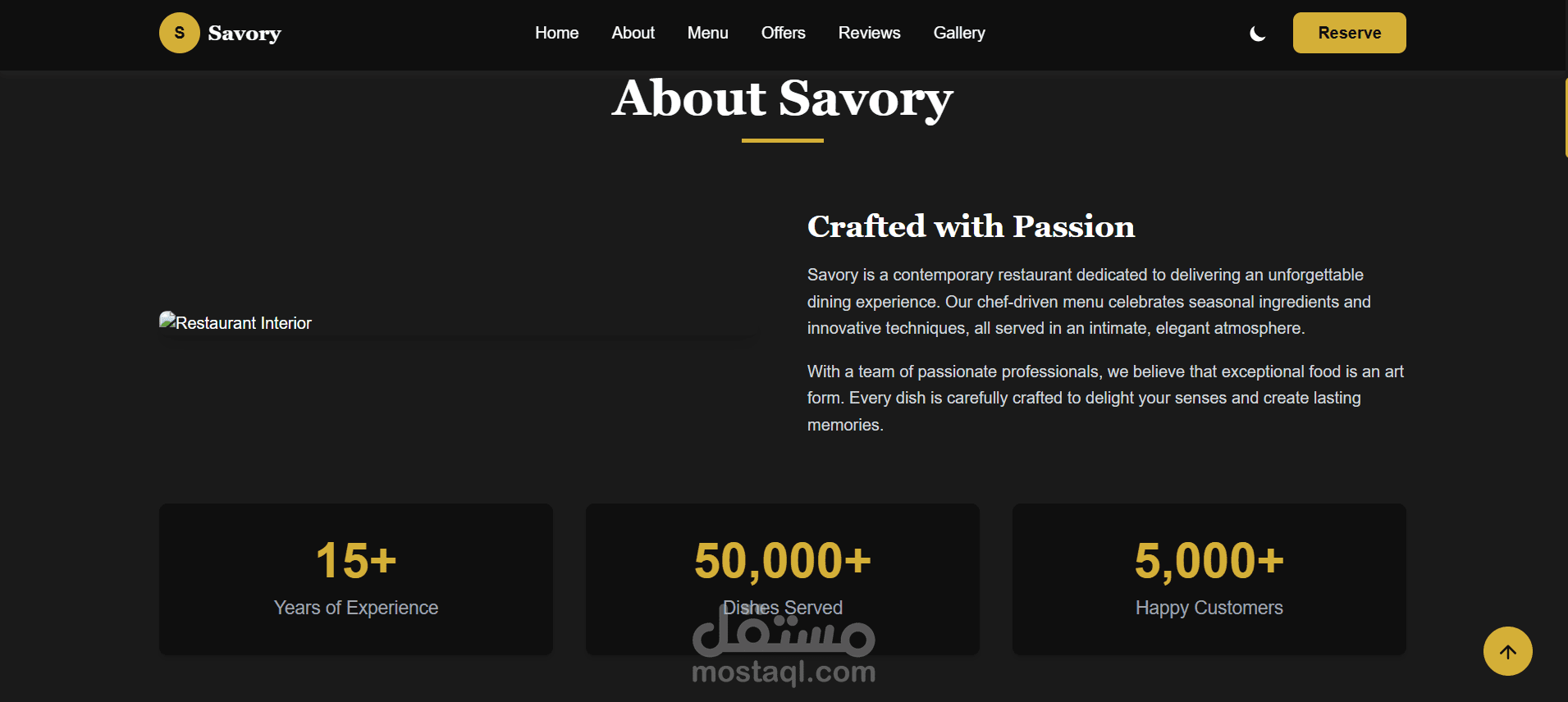 قمت بتصميم وتطوير Landing Page احترافية لمطعم فاخر باستخدام