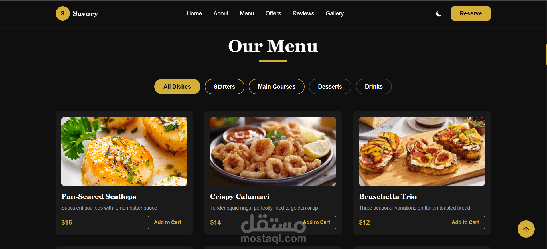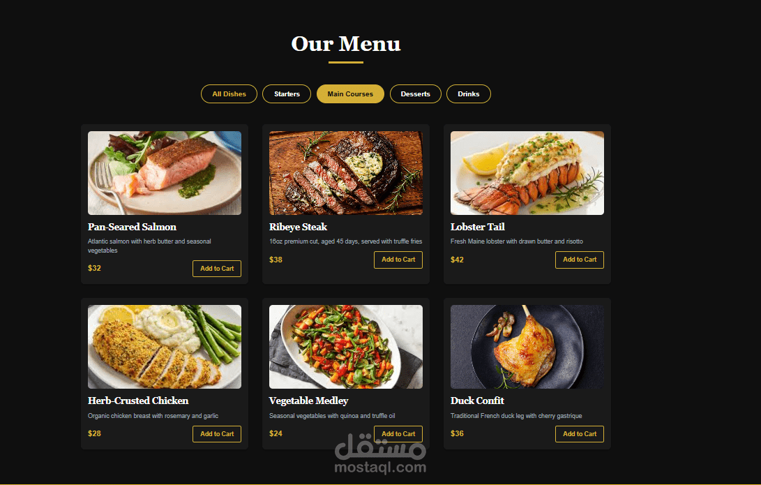 ? قائمة طعام ديناميكية مع فلترة حسب التصنيف (Starters / Main / Desserts / Drinks)