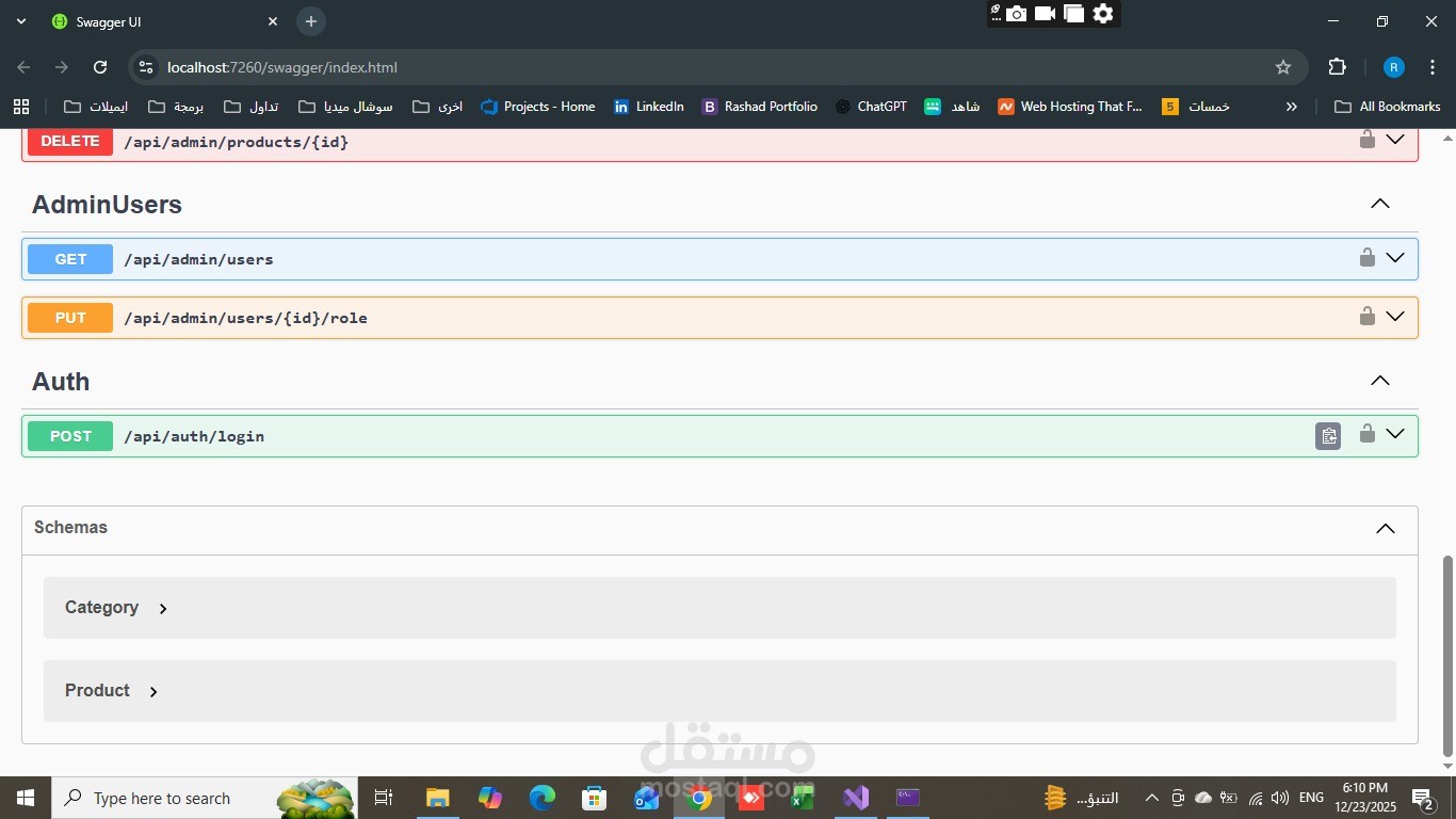واجهة برمجية (API) احترافية مبنية باستخدام ASP.NET Core لإدارة المتاجر الإلكترونية بكفاءة وأمان، مناسبة للربط مع مواقع الويب، تطبيقات الموبايل، أو لوحات تحكم إدارية.