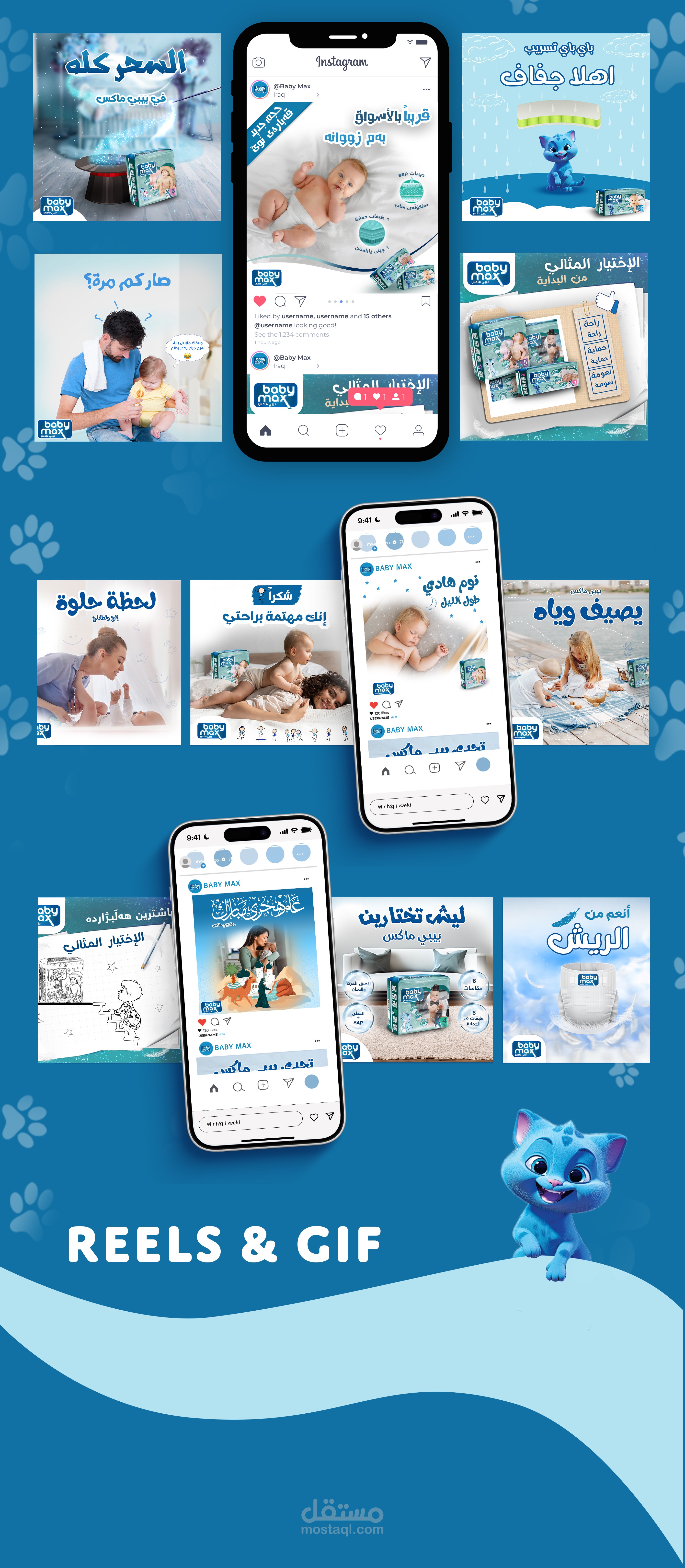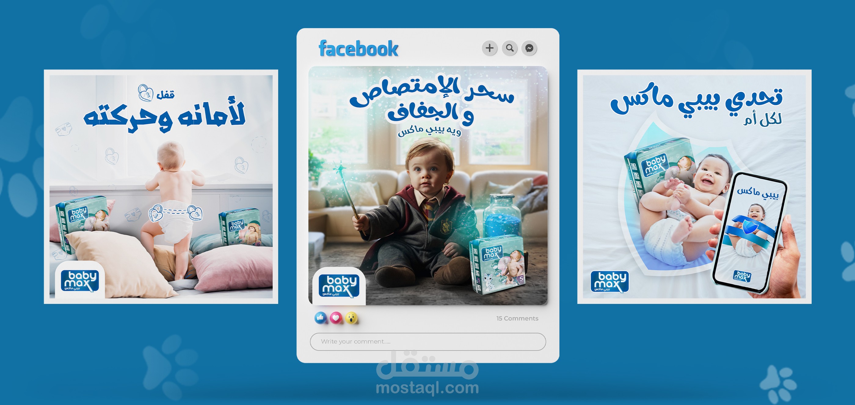 This project showcases a complete advertising campaign on Facebook and Instagram platforms created for the Baby Max brand, a diaper brand for babies from one month old.
