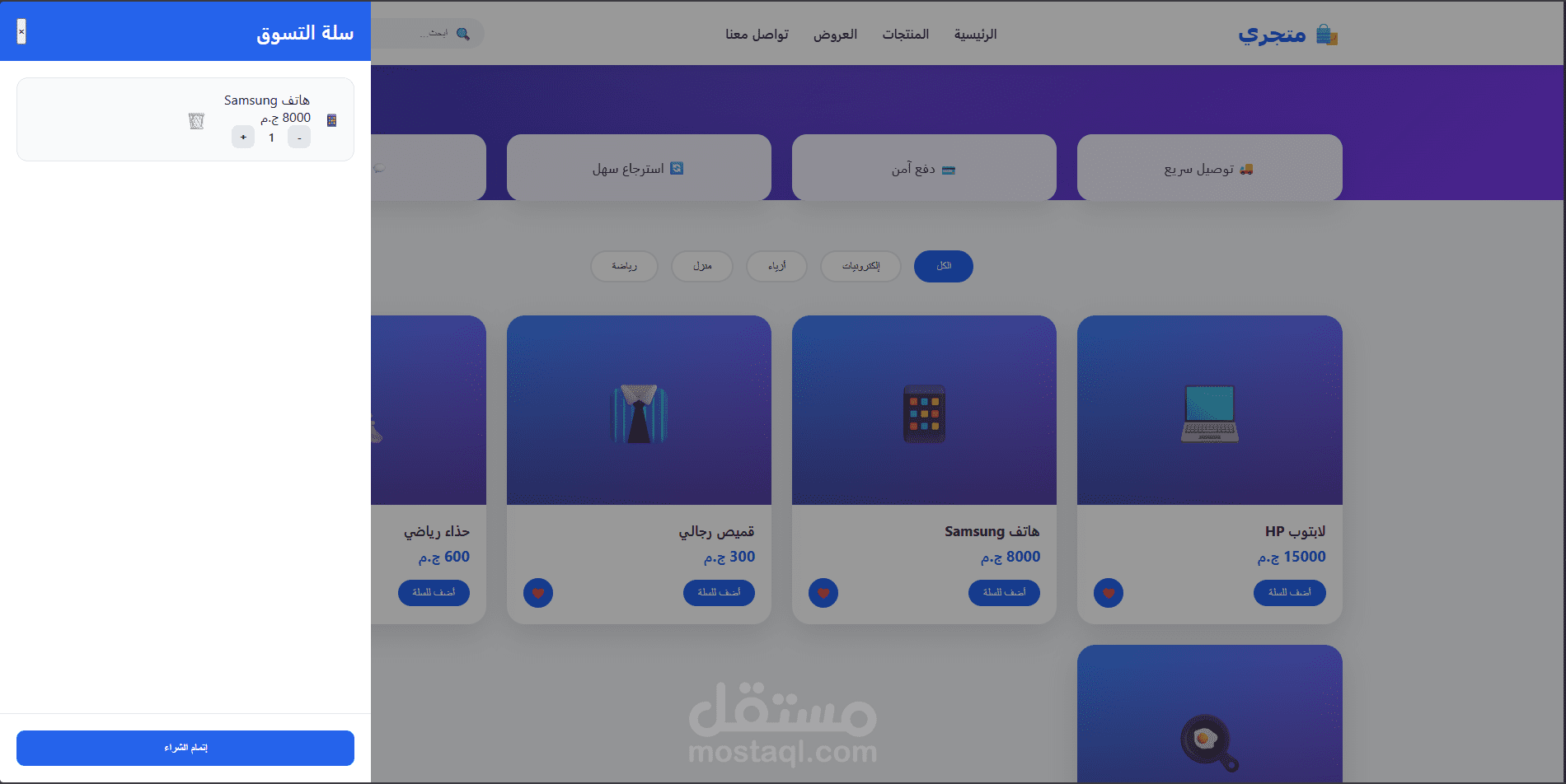 متجر إلكتروني حديث يقدّم مجموعة مختارة من المنتجات عالية الجودة بأسعار تنافسية، مع تجربة تسوّق سهلة، دفع آمن، وتوصيل سريع لكل مكان.