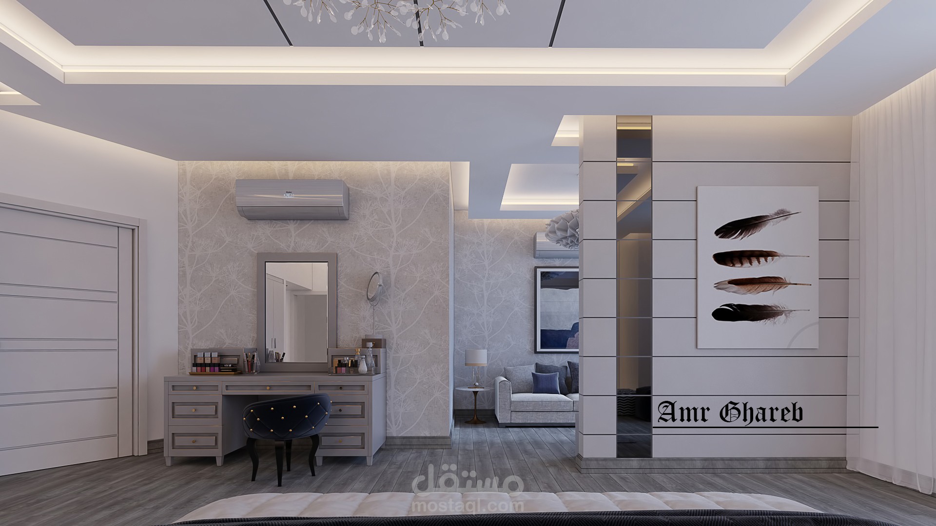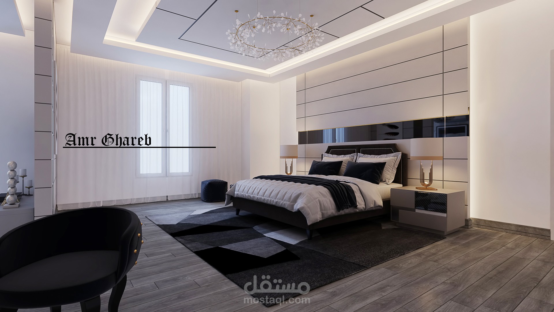 عمل تصميم لغفة نوم رئيسية بطابع مودرن