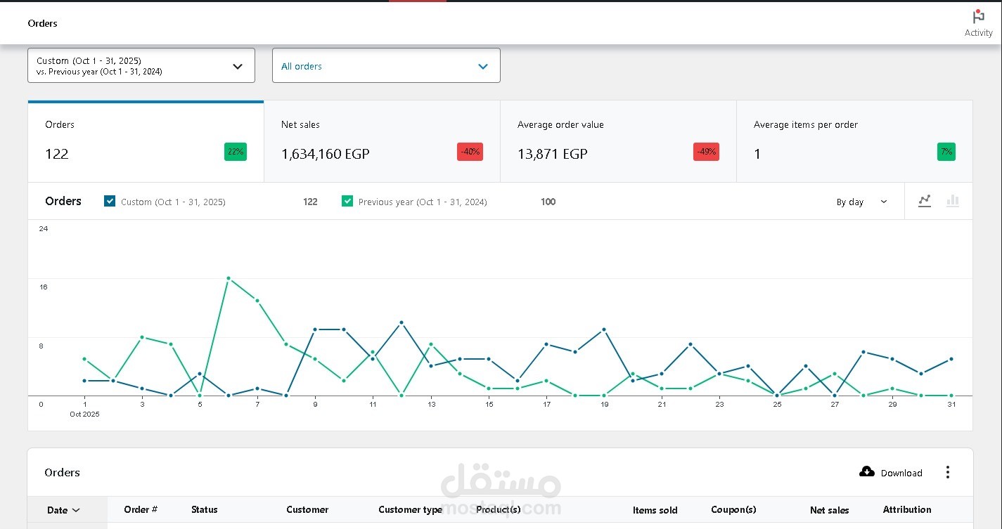 -تحويل متجر شبه متوقف (8 طلبات فقط في العام السابق) إلى متجر نشط ومربح