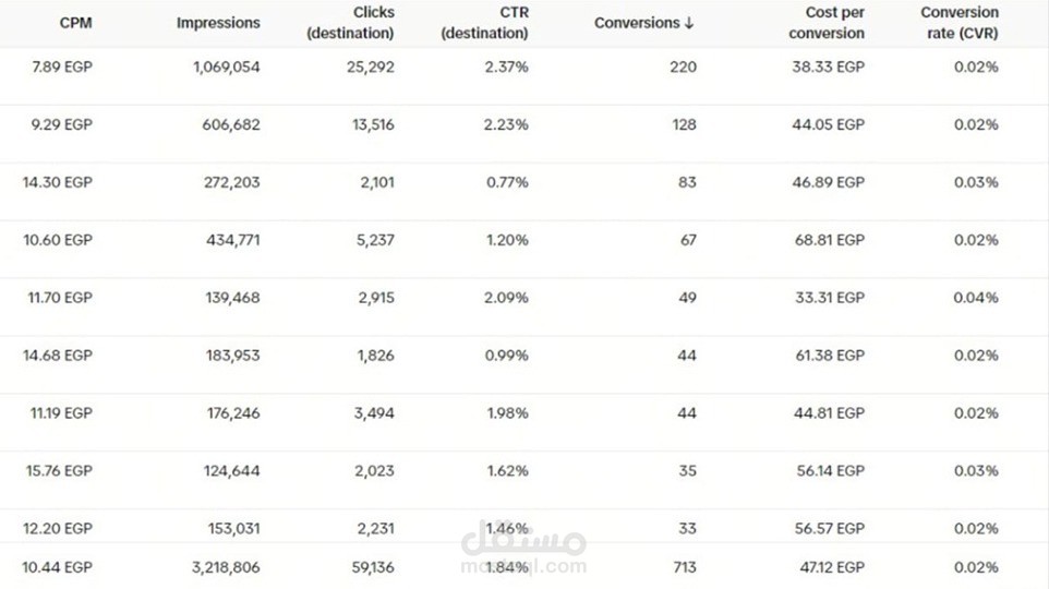 بعض نتائج اعلانات تم تنفيذها على ميتا لصفحة تعليميه
