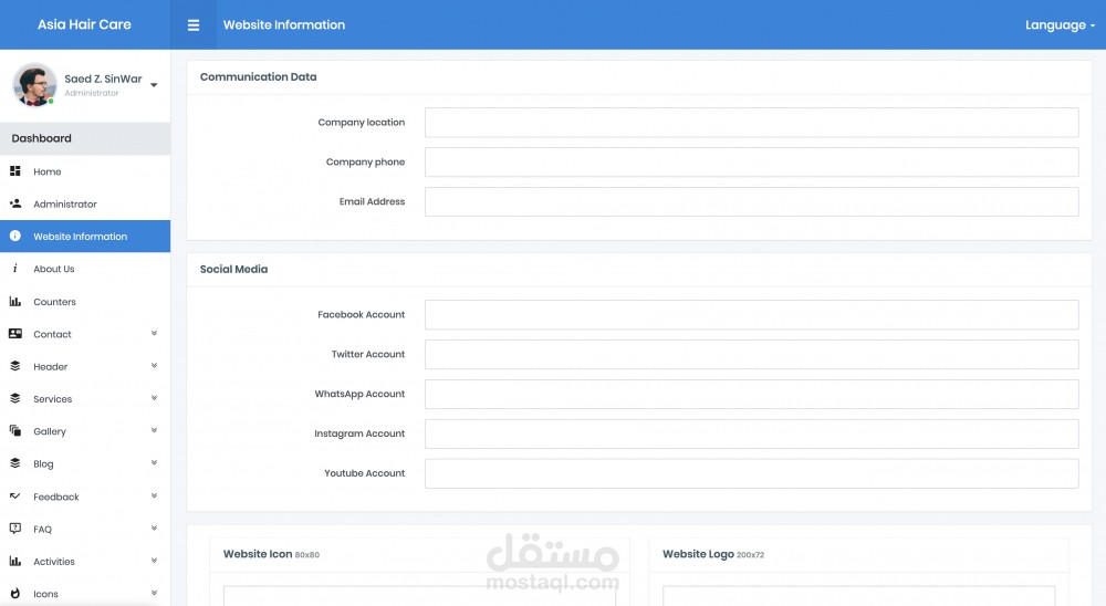 (2) كانت مهمتي تطوير صفحة الهبوط Landing Page لعرض خدمات المركز والرد على استسفارت الزوار؛ بالإضافة لذلك توفير لوحة تحكم Admin Panel لإضافة الخدمات والمدونات.