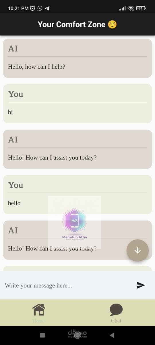 شات بوت مدمج لمساعدة المستخدم، الإجابة على الاستفسارات، وتقديم نصائح فورية بطريقة سهلة وبسيطة.