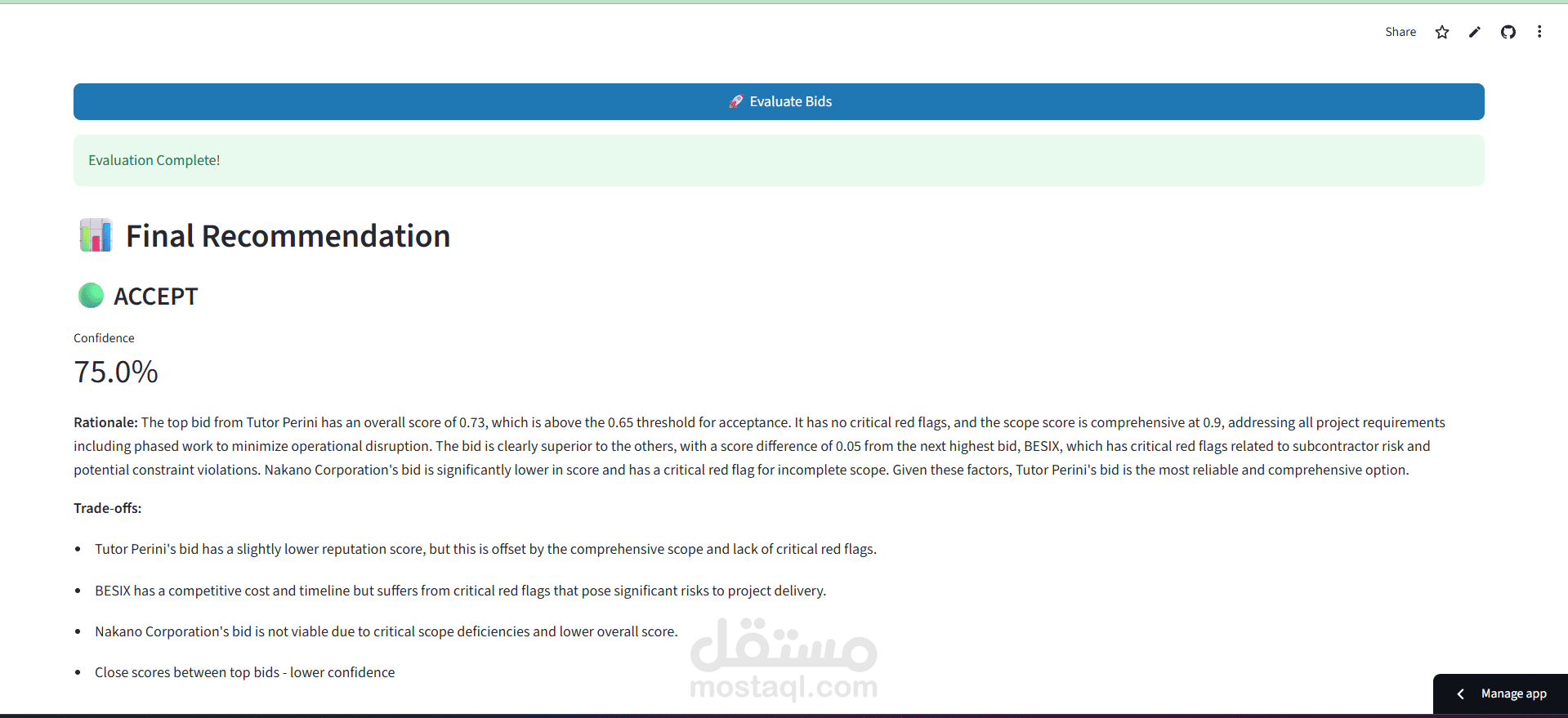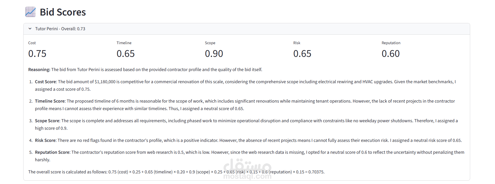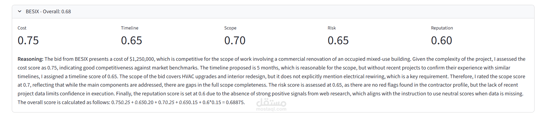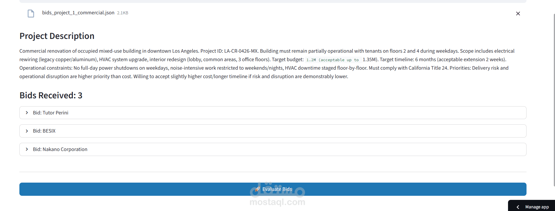 نظام تقييم عروض المقاولات بالذكاء الاصطناعي (AI-Powered Construction Bid Evaluation)