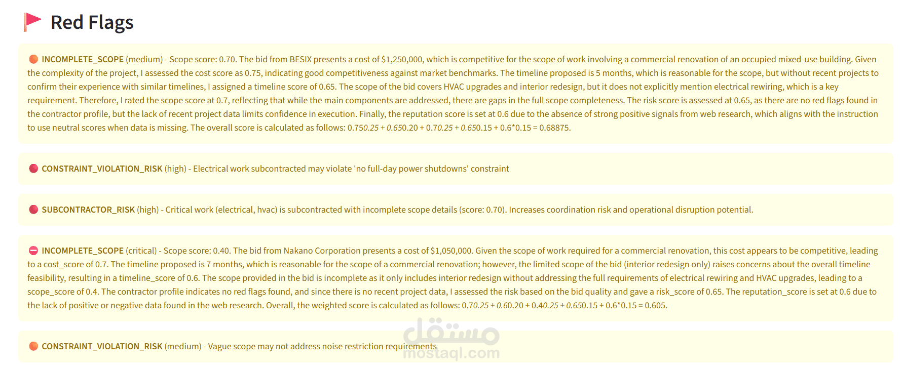 كشف تلقائي للعلامات الحمراء: نطاق غير مكتمل، تكلفة مشبوهة، مخاطر المتعاقدين من الباطن
