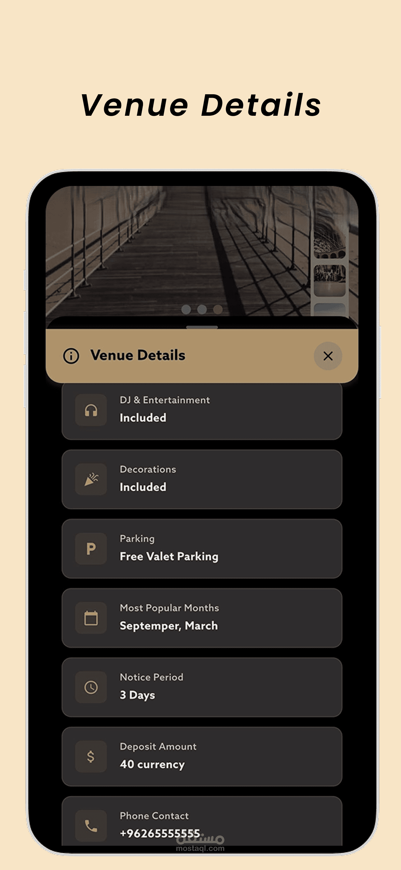 التطبيق. إستعراض القاعات المتاحة، معرفة التفاصيل واألسعار، إختيار األنسب لك، وحجزها بسهولة