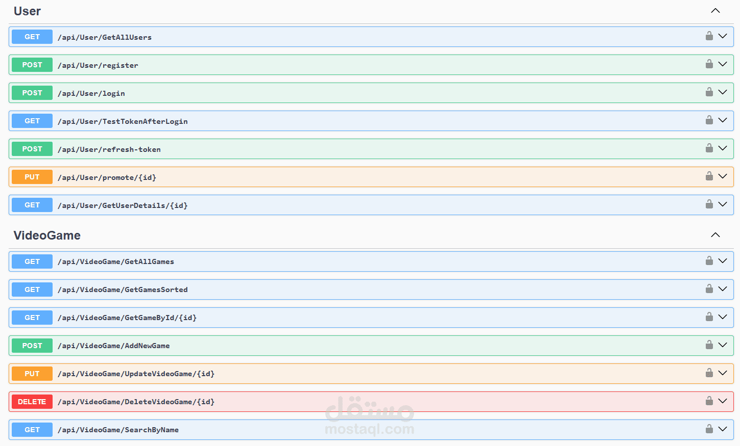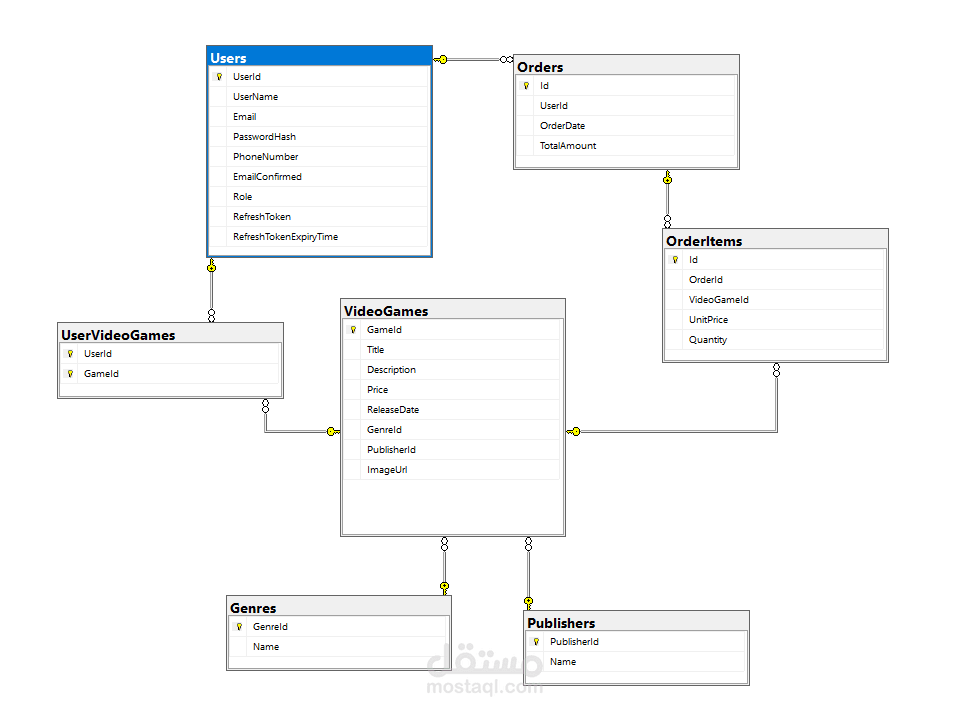 مشروع API لإدارة متجر ألعاب فيديو. يشمل تسجيل المستخدمين، إدارة الألعاب والطلبات، ونظام صلاحيات مبني على JWT وRole-based. تم تطبيق Clean Architecture وRepository Pattern لتسهيل الصيانة والتطوير المستقبلي.
