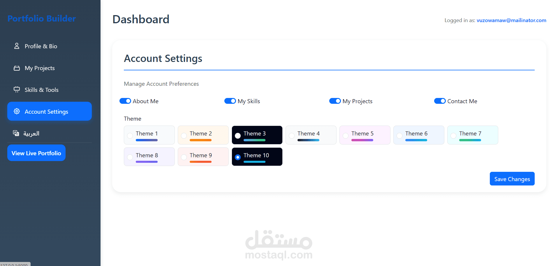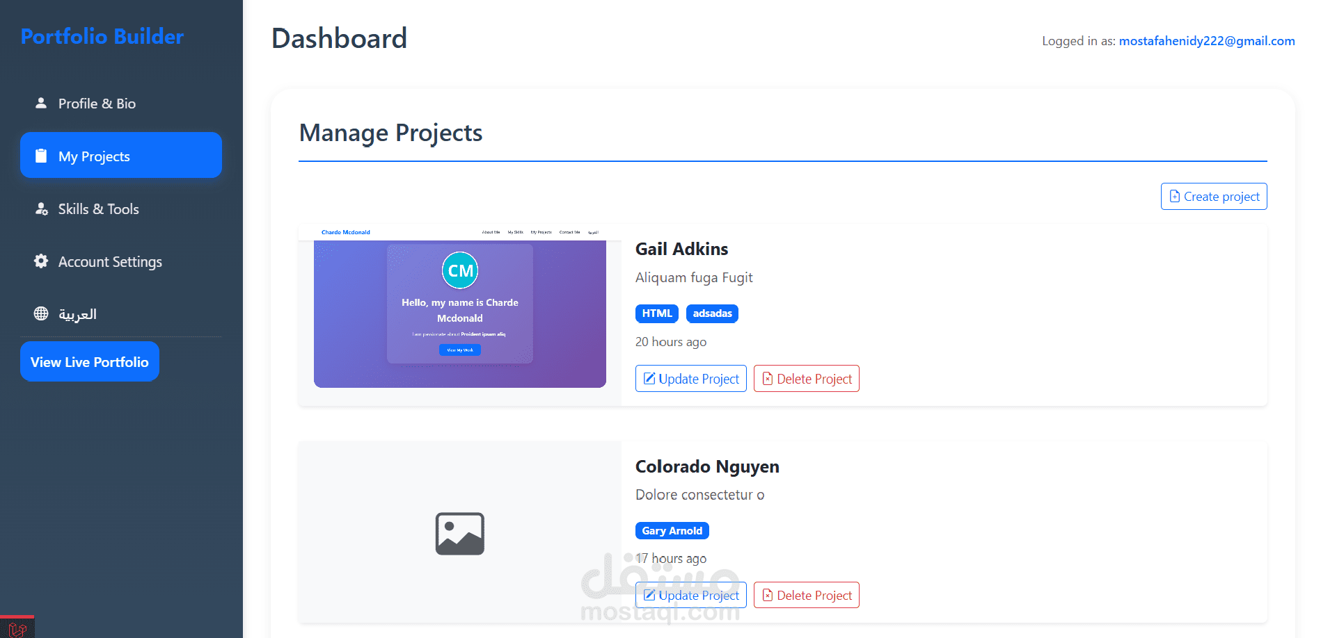 The project demonstrates a robust foundation for managing portfolio content, integrating dynamic routing, structured data models, and a responsive frontend design powered by Blade templates and Tailwind CSS. PortfolioBuilder showcases an ability to build reusable components, scalable application structure, and organization suitable for professional developer portfolios or tailored client use cases.