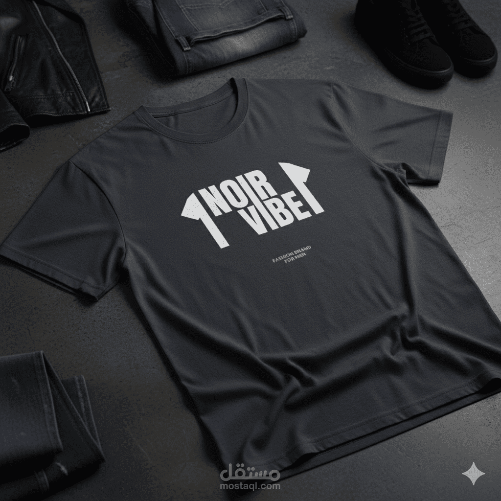 تصميم شعار بسيط وعصري لبراند أزياء رجالي باسم NOIR VIBE، يعتمد على أسلوب Minimal مع تركيز على الوضوح وقوة الاسم.