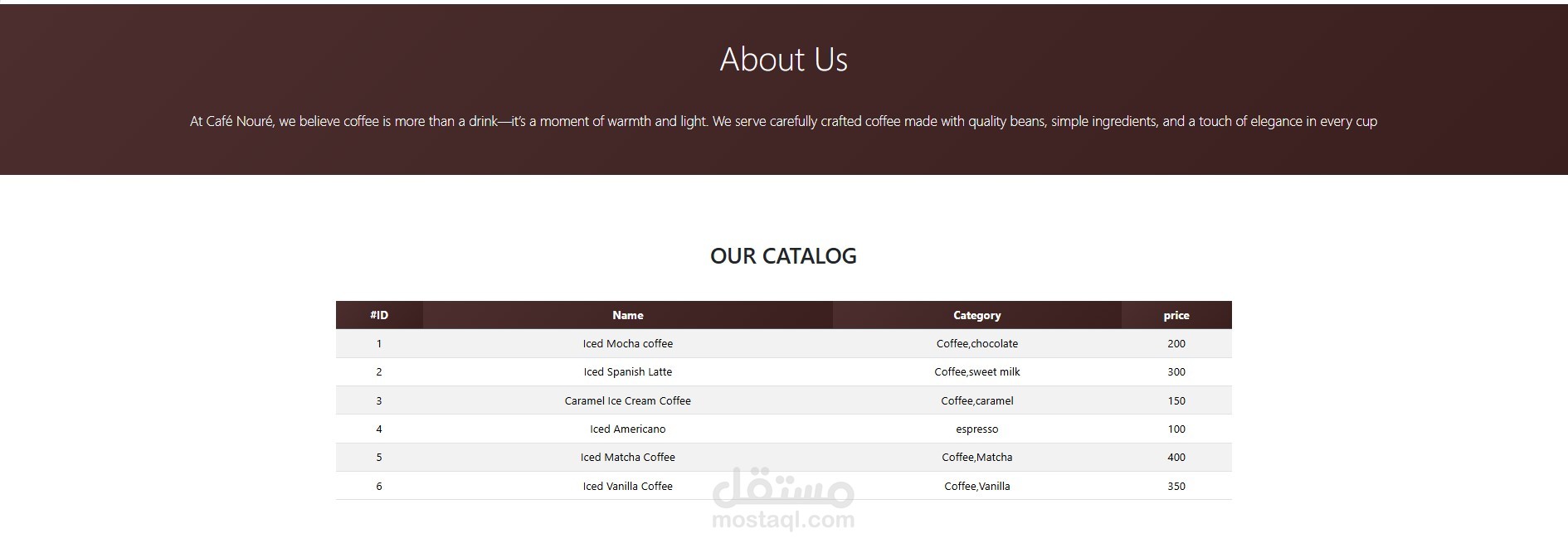 تم تنفيذ موقع إلكتروني لكافيه بتصميم عصري وجذاب باستخدام HTML وCSS وBootstrap، مع الاهتمام بتناسق الألوان وسهولة التصفح. يحتوي الموقع على صفحة رئيسية تعرض العروض الترويجية وقسم لعرض أحدث المشروبات مع تصميم متجاوب يعمل بكفاءة على مختلف الشاشات (Desktop – Tablet – Mobile). يهدف المشروع إلى إبراز هوية الكافيه وتقديم تجربة مستخدم سلسة وبسيطة.