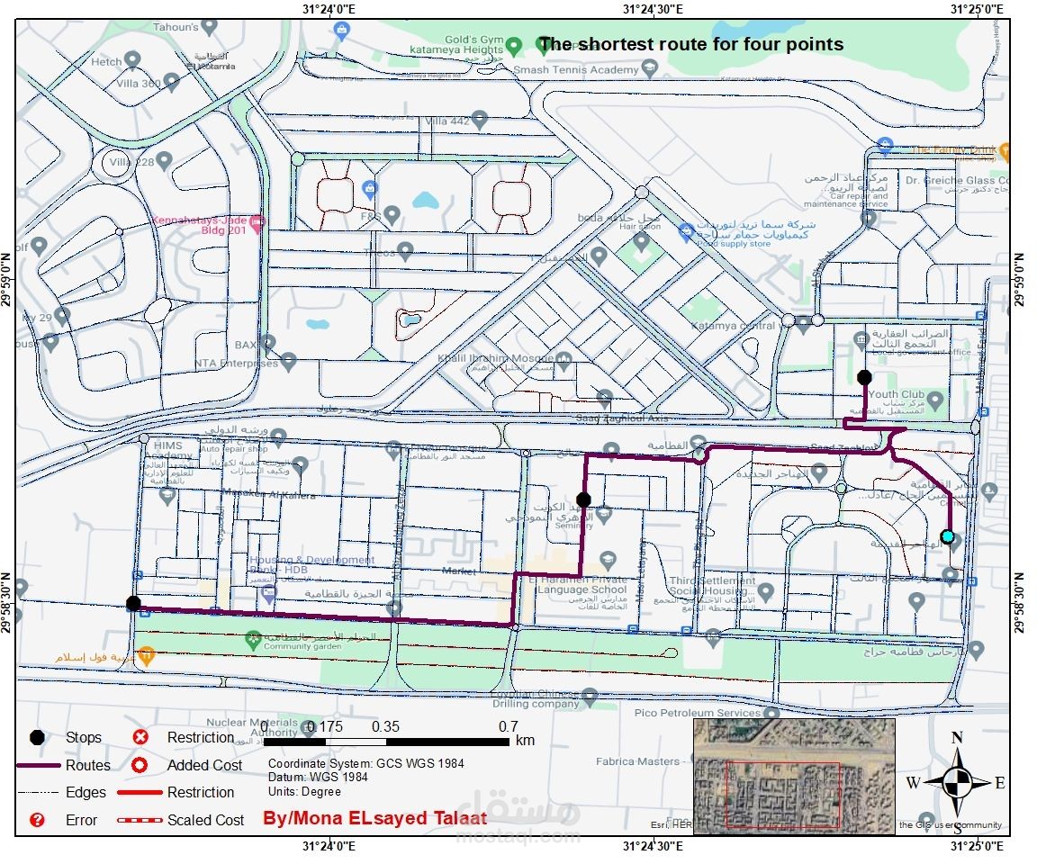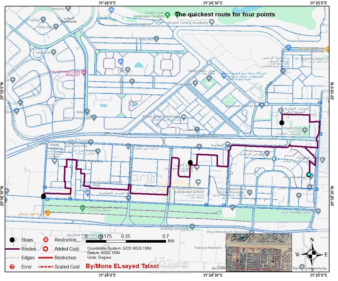 In this project, I focused on road network classification and advanced network analysis for Katameya area using ArcGIS Pro Creating a geodatabase for roads and applying topology rules Manual digitizing of road features without using ready-made data.