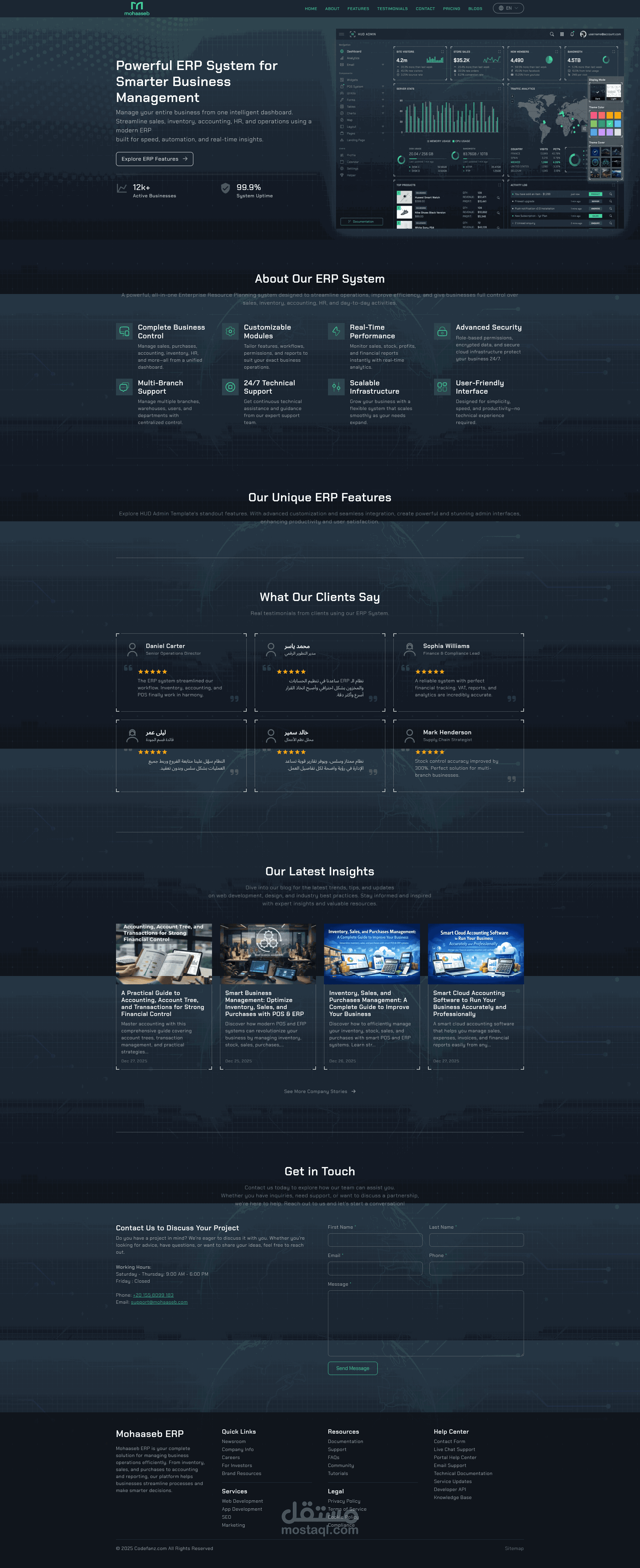 يُعد "محاسب" نظام ERP سحابي شامل صُمم لتبسيط عملياتك التشغيلية وتسريع نمو مشروعك. نحن نجمع لك أنظمة نقاط البيع (POS)، المحاسبة، إدارة المخزون، والموارد البشرية في لوحة تحكم ذكية واحدة؛ مما يمنحك سيطرة كاملة على عملك وتجربة إدارة سلسة بعيداً عن أي تعقيد.