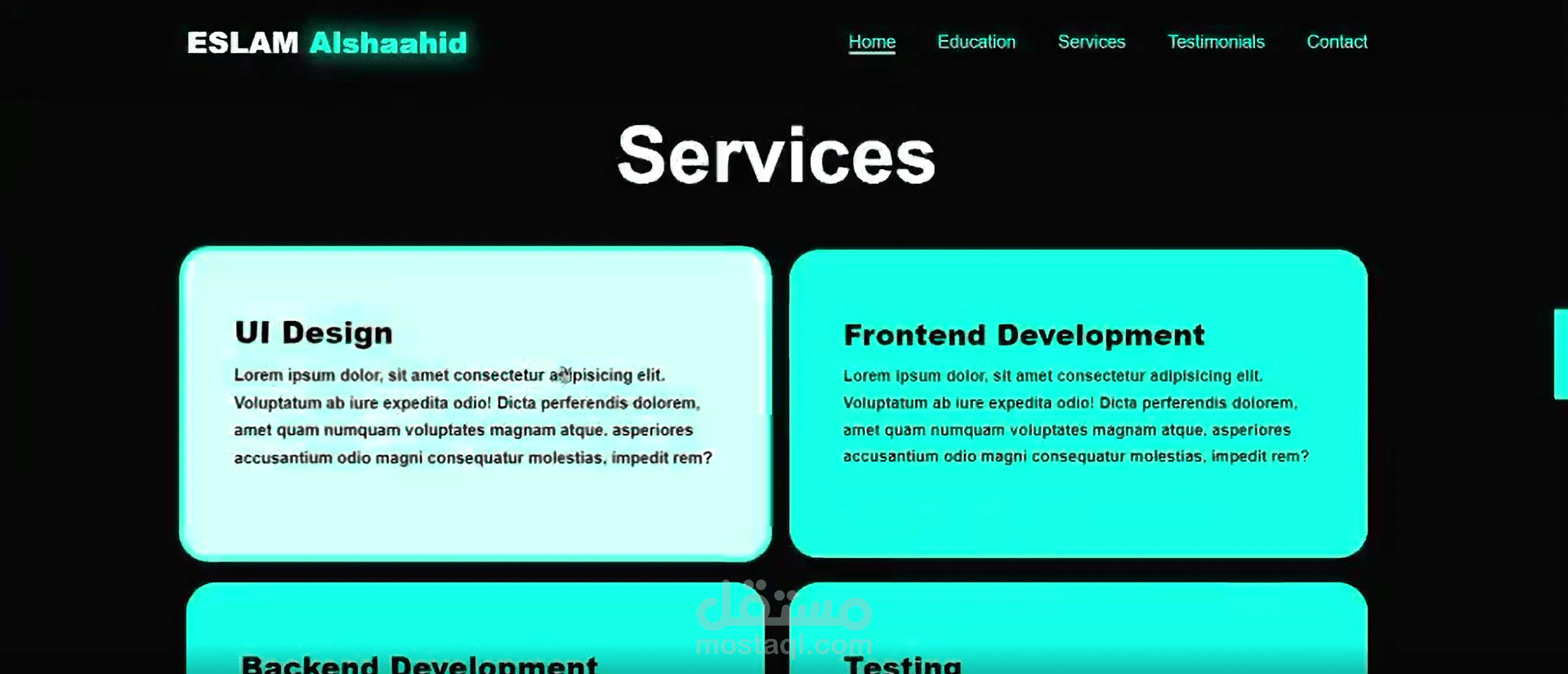 قمت بتصميم وتطوير موقع بورتفوليو شخصي لعرض مهاراتي ومشاريعي كمطور Full Stack. يضم الموقع نبذة تعريفية، عرضًا للمشاريع مع تفاصيل التقنيات المستخدمة، ووسائل تواصل مباشرة. تم التركيز على تصميم واجهة مستخدم عصرية ومتجاوبة مع جميع الأجهزة، وتحسين الأداء وسهولة التصفح، بما يعكس هويتي المهنية وخبرتي التقنية.