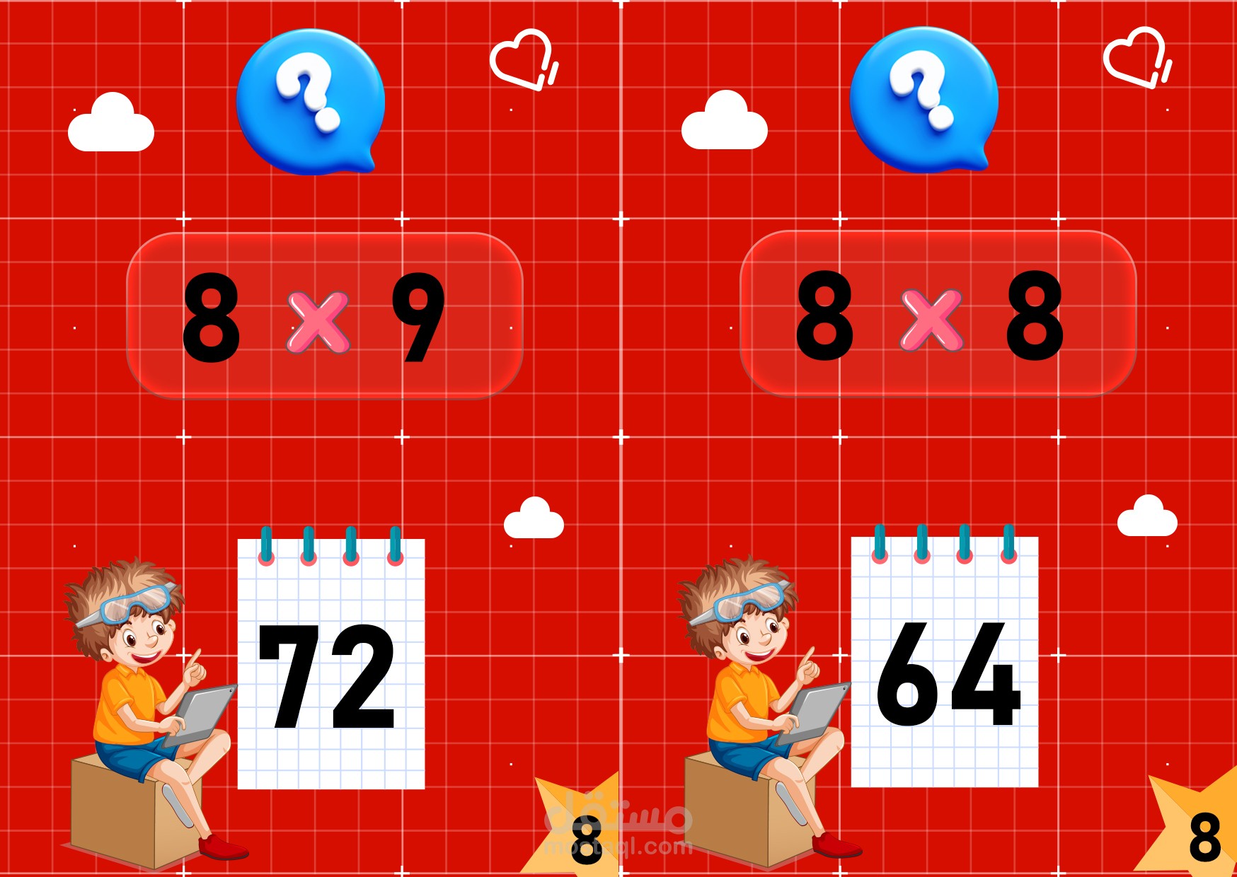 تصميم لبطاقات منها بطاقات خاصة بجدول الضرب لتعليمه للصغار واخرى خاصة بمدرسة خاصة