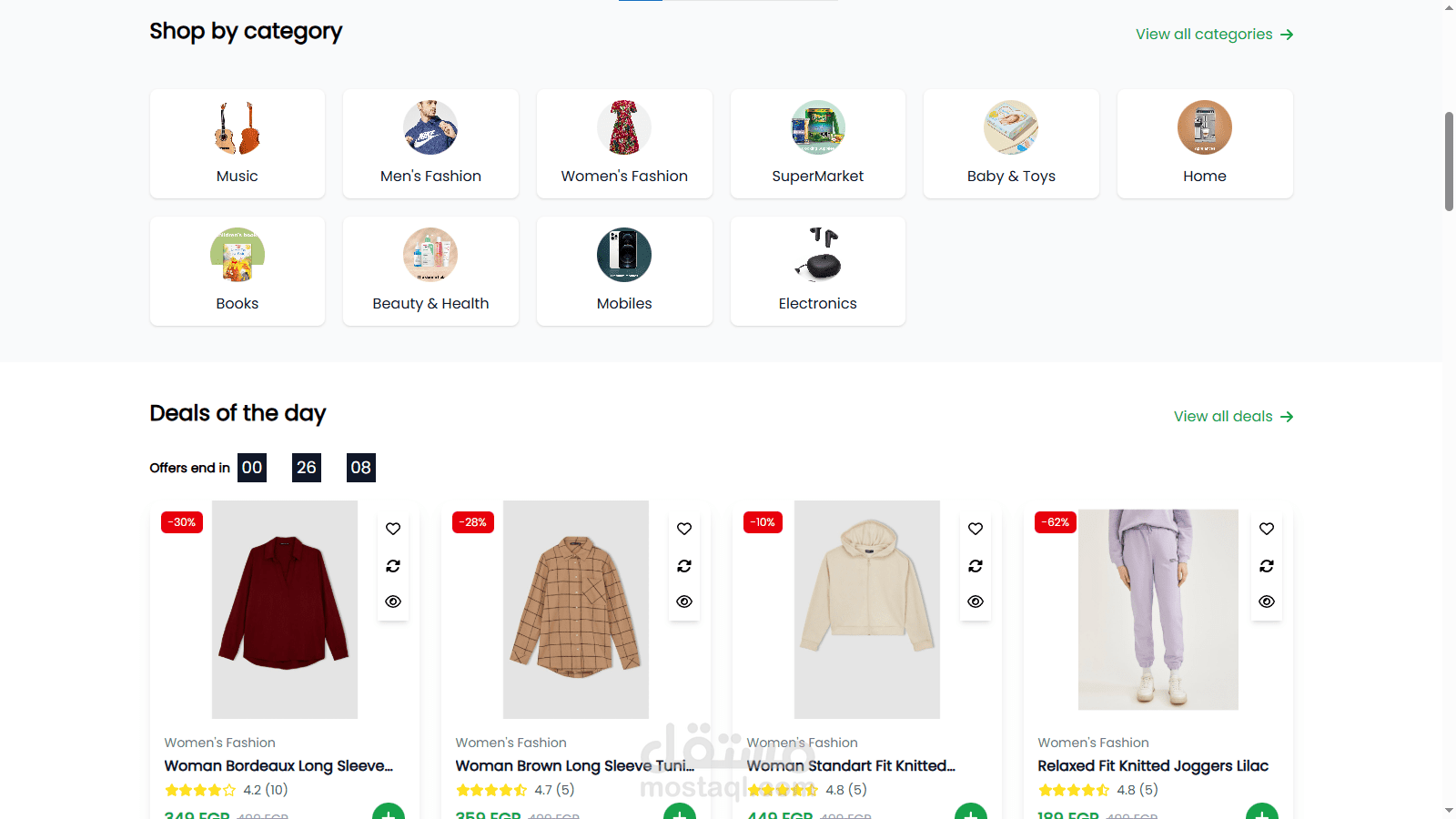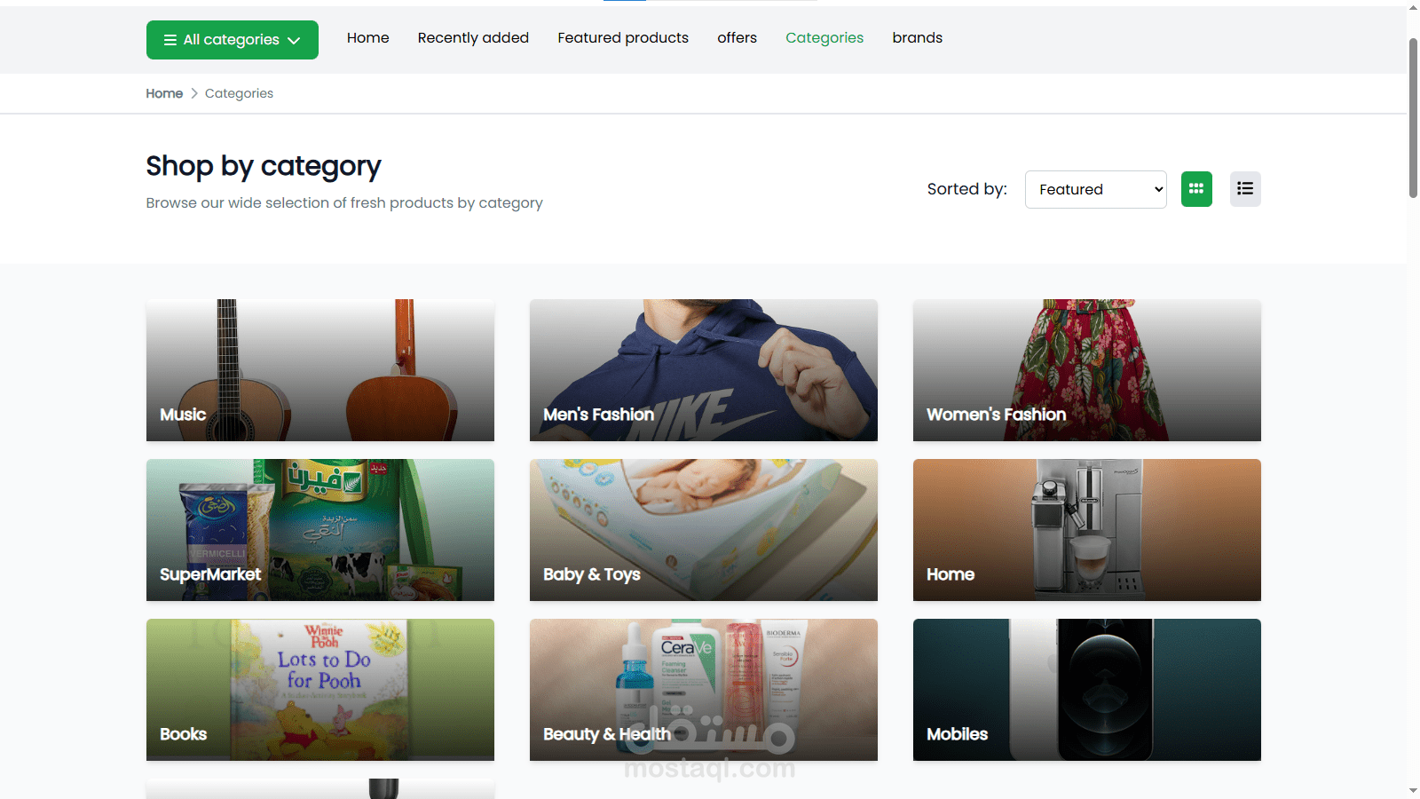 تطوير تطبيق E-commerce كامل كـ Frontend باستخدام React، يوفّر تجربة تسوق متكاملة (تصفّح منتجات، بحث وفلترة، سلة مشتريات، قائمة مفضلة، وإتمام الطلب). المشروع تم تنفيذه كمشروع شخصي للتطبيق العملي على بناء متجر وربطه بـ REST API جاهزة.