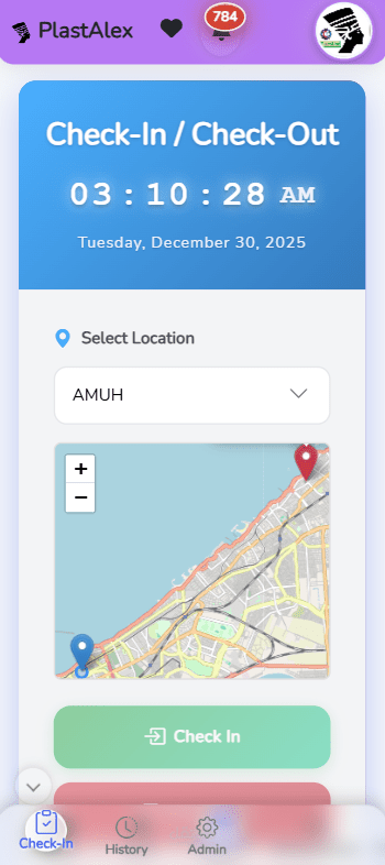 • Check-in/Check-out مع Geofencing للتحقق من الموقع