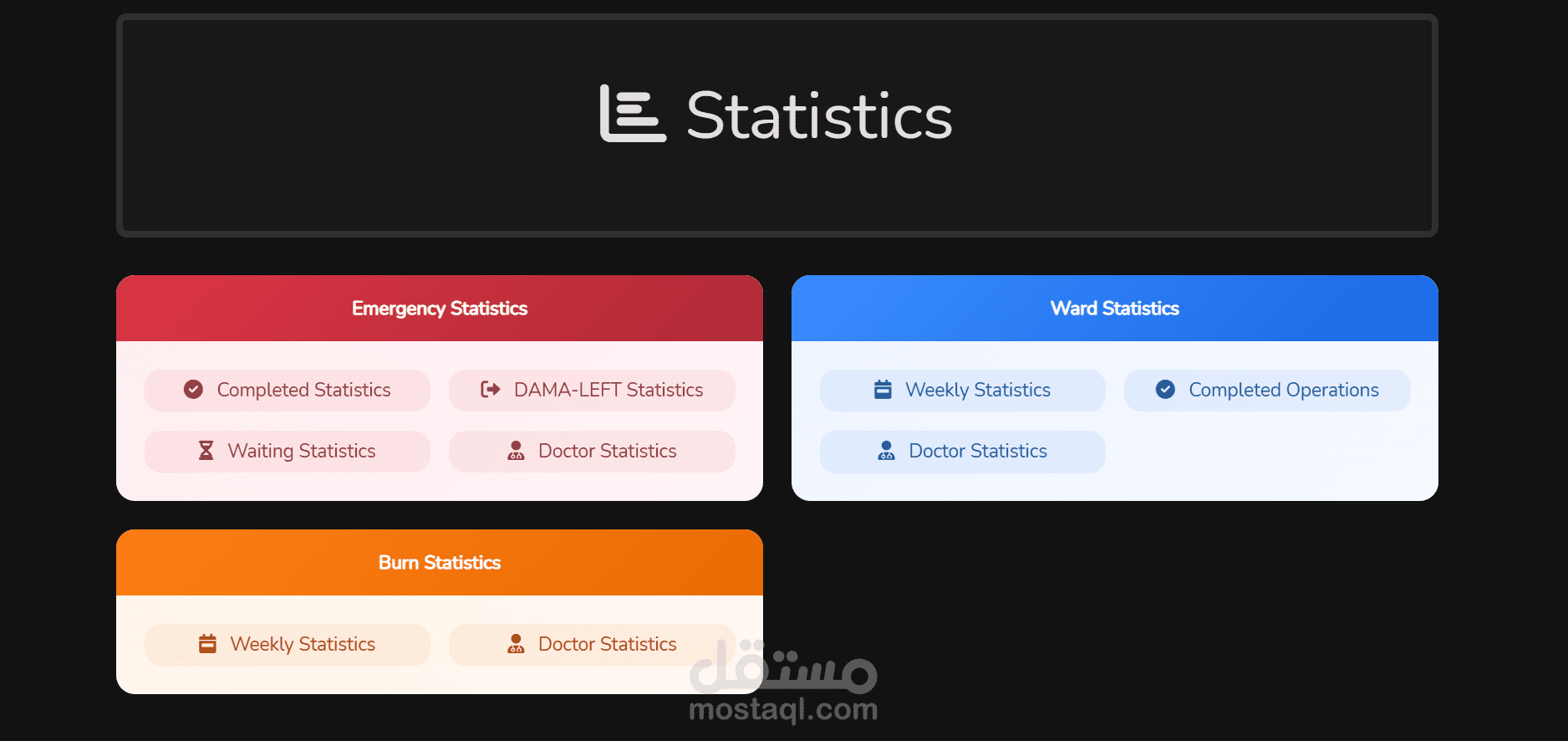 • تتبع دقيق لحالات المرضى (قبول، خروج، DAMA، Left)