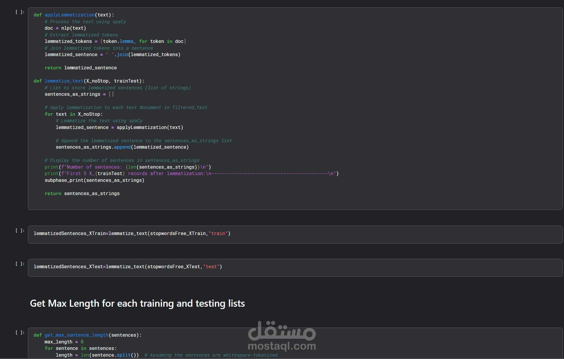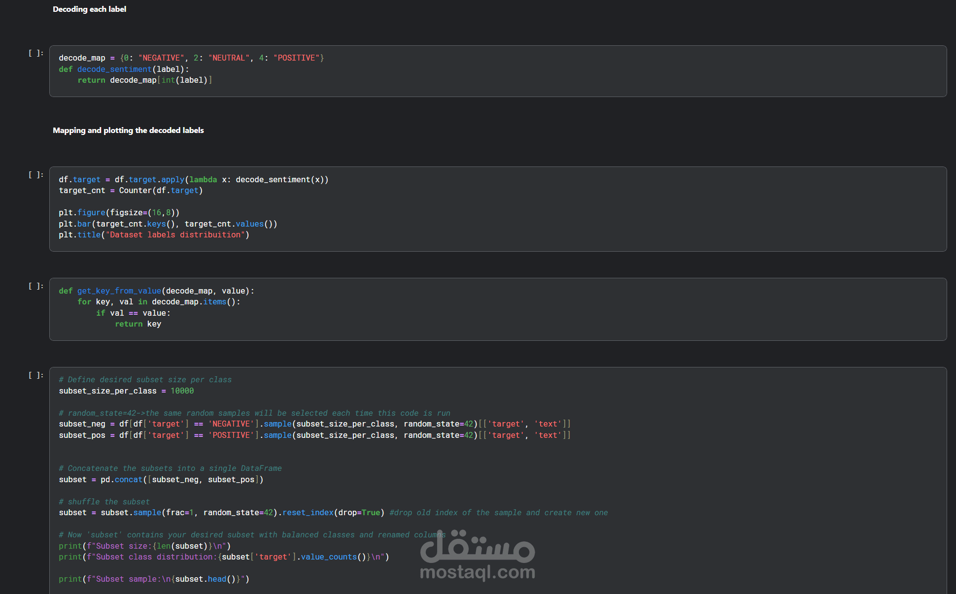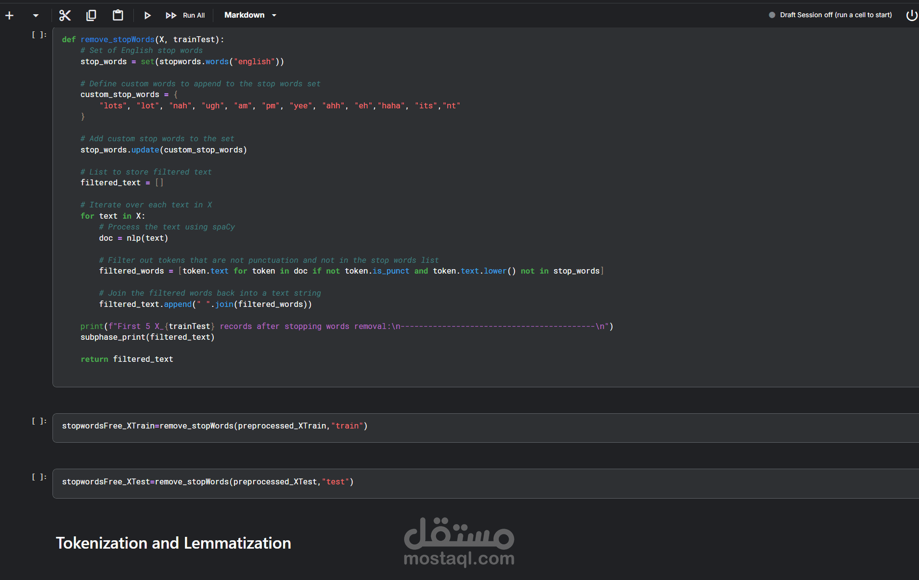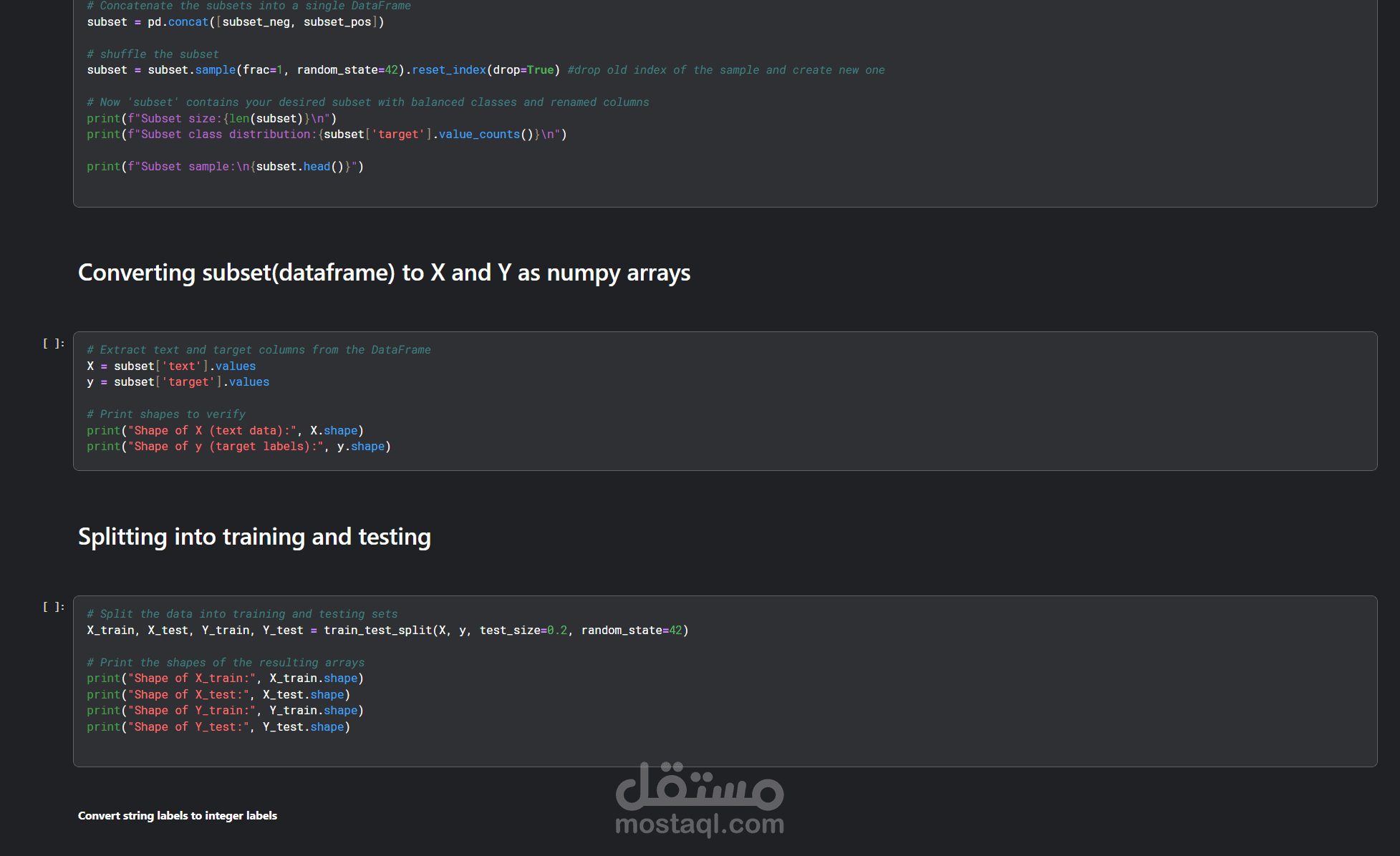 شمل العمل تنفيذ مرحلة معالجة بيانات متكاملة، تضمنت تنظيف النصوص، إزالة الكلمات غير المؤثرة، وتحويل الكلمات إلى تمثيلات رقمية باستخدام نماذج جاهزة مثل FastText و GloVe لتعزيز فهم النموذج للمعاني اللغوية.