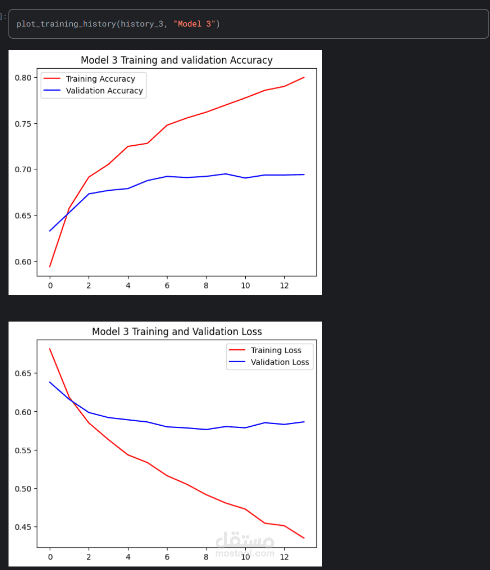 تم تصميم وبناء وتدريب عدة نماذج شبكات عصبية تلافيفية (CNN) باستخدام TensorFlow/Keras، مع تطبيق تقنيات تحسين الأداء مثل Dropout و Batch Normalization و ReduceLROnPlateau للحد من الإفراط في التعلم وتحسين نتائج النموذج.