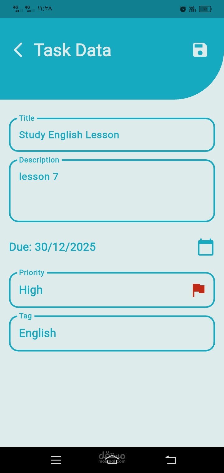 يدعم التطبيق إدارة الحالة باستخدام Riverpod، تحديد أولوية المهمة، تاريخ الاستحقاق، الوسوم، وتتبع حالة الإنجاز.
