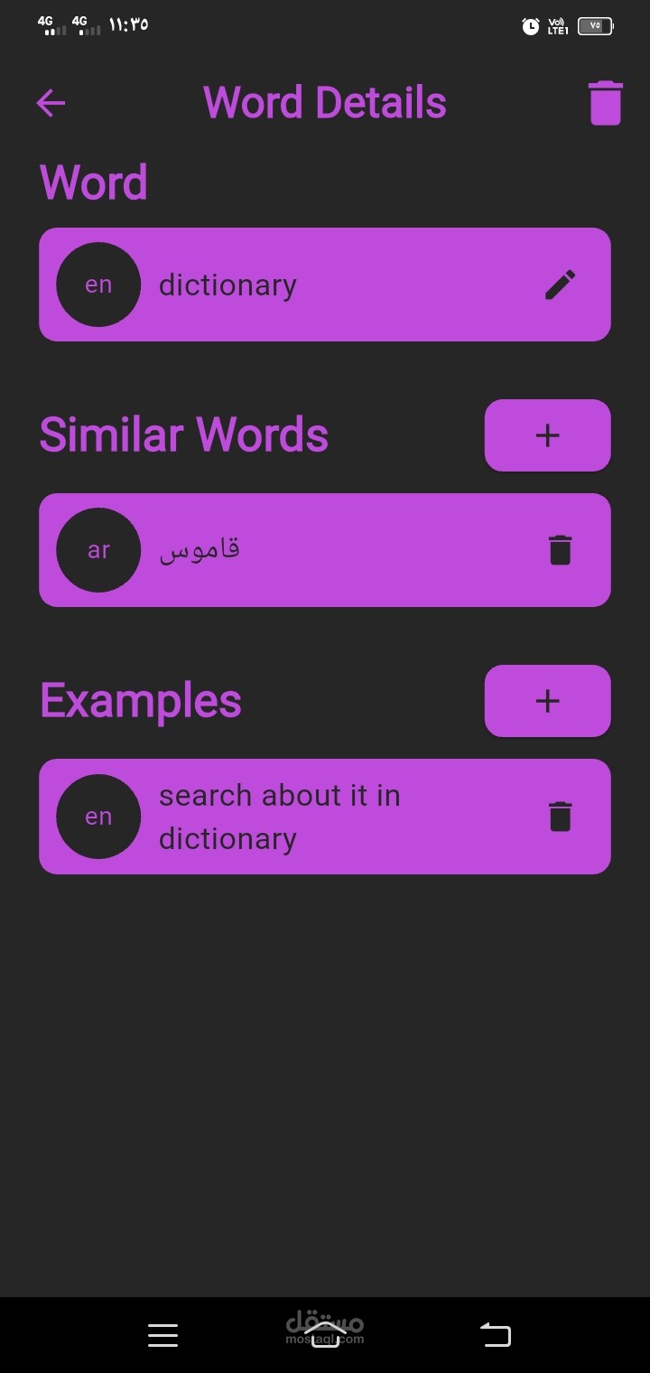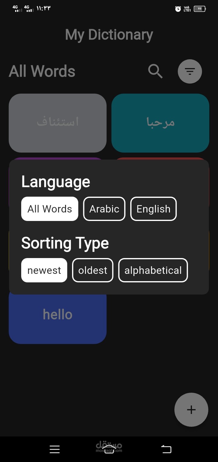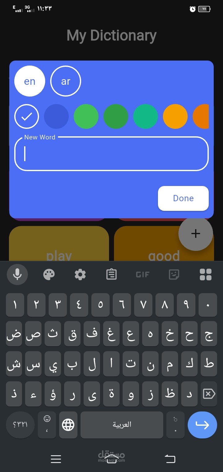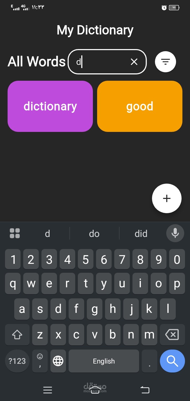 إضافة كلمات جديدة باللغتين العربية والإنجليزية.