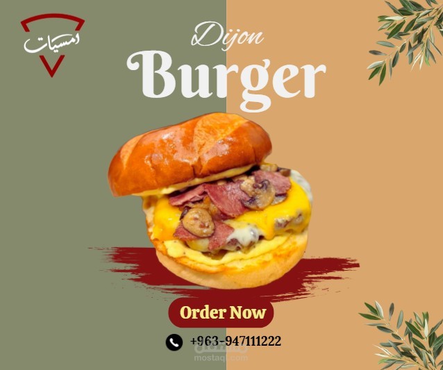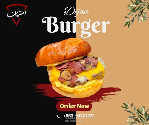 تصميم إعلان دعائي لمنتج غذائي (Dijon Burger) بأسلوب بصري جذاب واحترافي. ركّزت في العمل على إبراز تفاصيل المنتج بشكل واضح من خلال استخدام خلفية داكنة تبرز ألوان البرغر، مع إضافة عناصر زخرفية بسيطة لتعزيز الطابع العصري. التصميم يتضمن شعار العلامة التجارية ومعلومات التواصل، مما يجعله إعلاناً متكاملاً يصلح للاستخدام في الحملات التسويقية الرقمية والمطبوعة. الهدف من العمل هو جذب انتباه الجمهور وإيصال رسالة مباشرة تدعو للطلب والتجربة