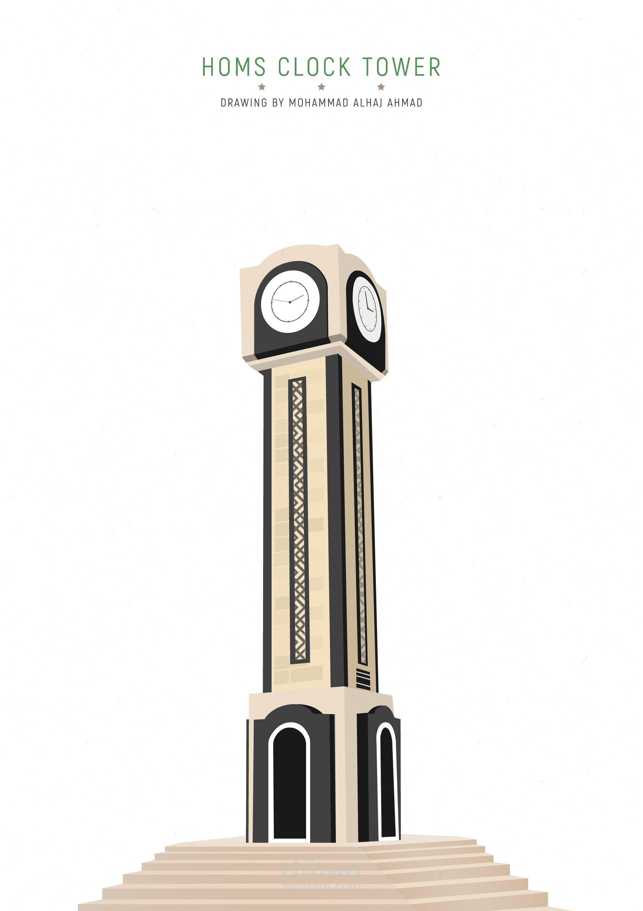 ساعة حمص رمز لهذه المدينة، رسم على illustrator
