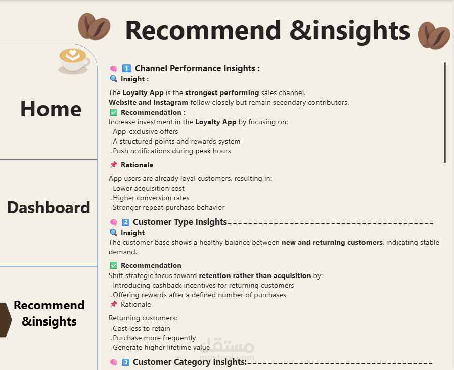 Designed and implemented a polished Power BI dashboard for Brew & Bond Café, consolidating 2024–2025 data to provide actionable business insights. The dashboard visualizes sales trends, customer behavior, inventory performance, and revenue metrics through intuitive reports and KPIs. This solution empowers management to make data-driven decisions, optimize operations, refine marketing strategies, and uncover new opportunities to drive growth and profitability.