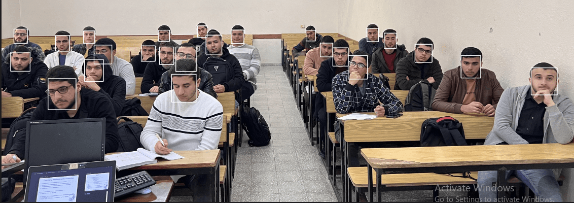 استخدام نموذج YOLO لاكتشاف الوجوه داخل صور القاعة الدراسية.