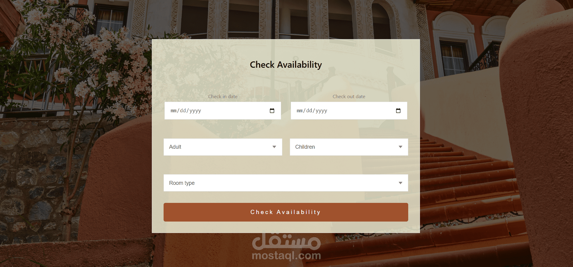 HTML, CSS, JavaScript، ويتيح للمستخدمين حجز الغرف بسهولة من خلال واجهة بسيطة وواضحة.
