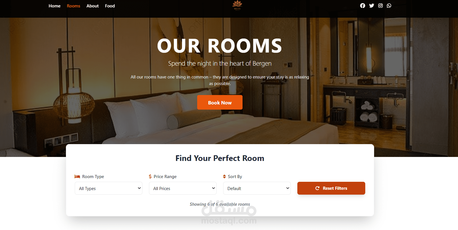 Responsive Hotel Booking Website هو موقع ويب لحجز الفنادق تم تصميمه وتطويره باستخدام